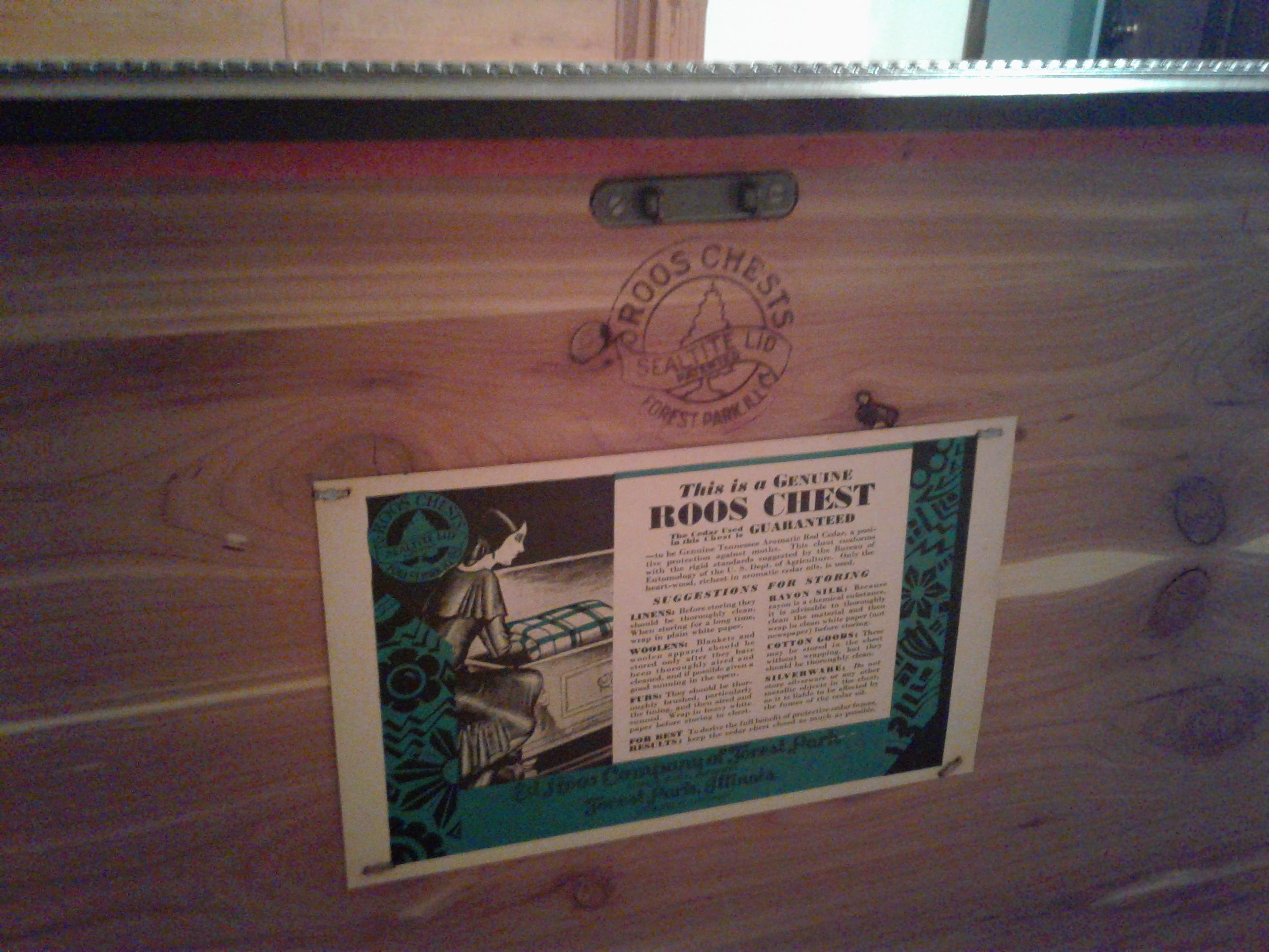 Good condition roos cedar chest with beautiful engraving and stamps and authenticity paperwork just missing the serial # on the bottom. Just had the model #