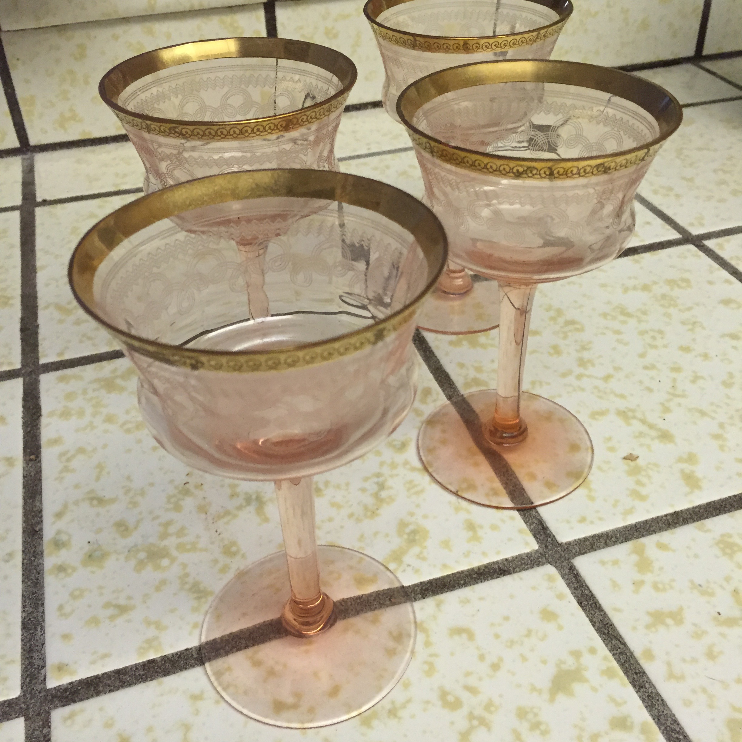 Re: Rose color cordial glasses with 1/4 in. gold etched rim ...