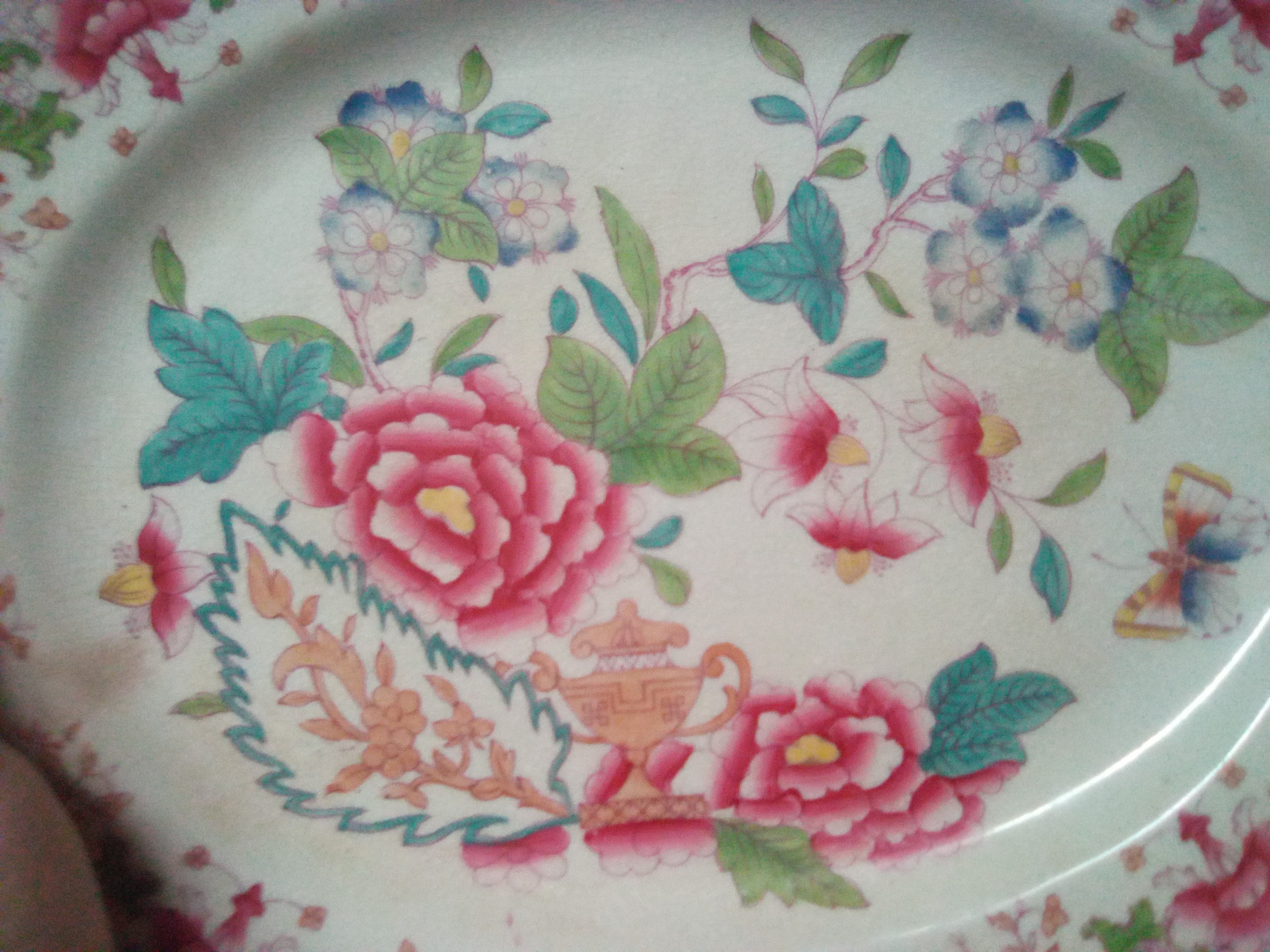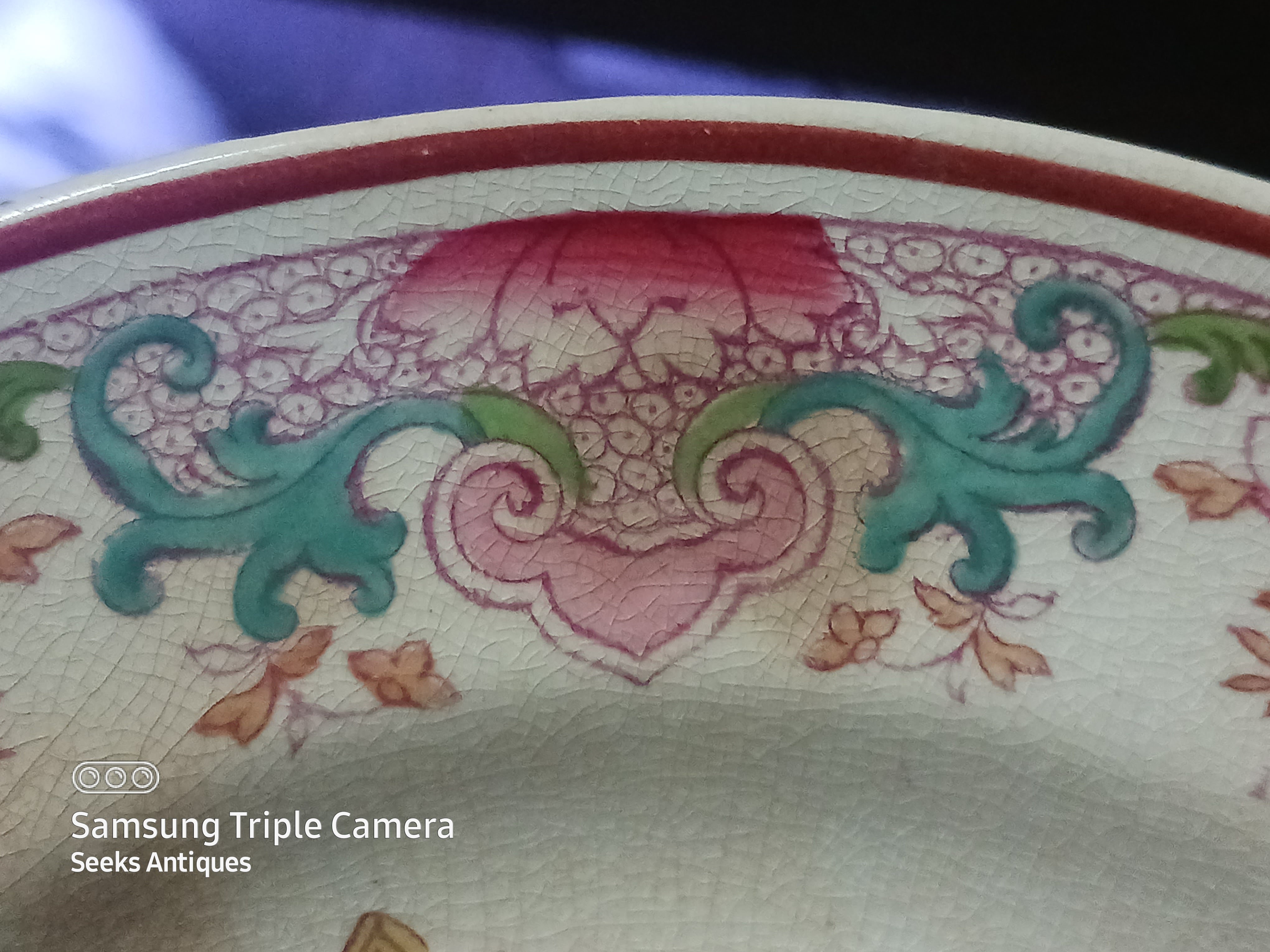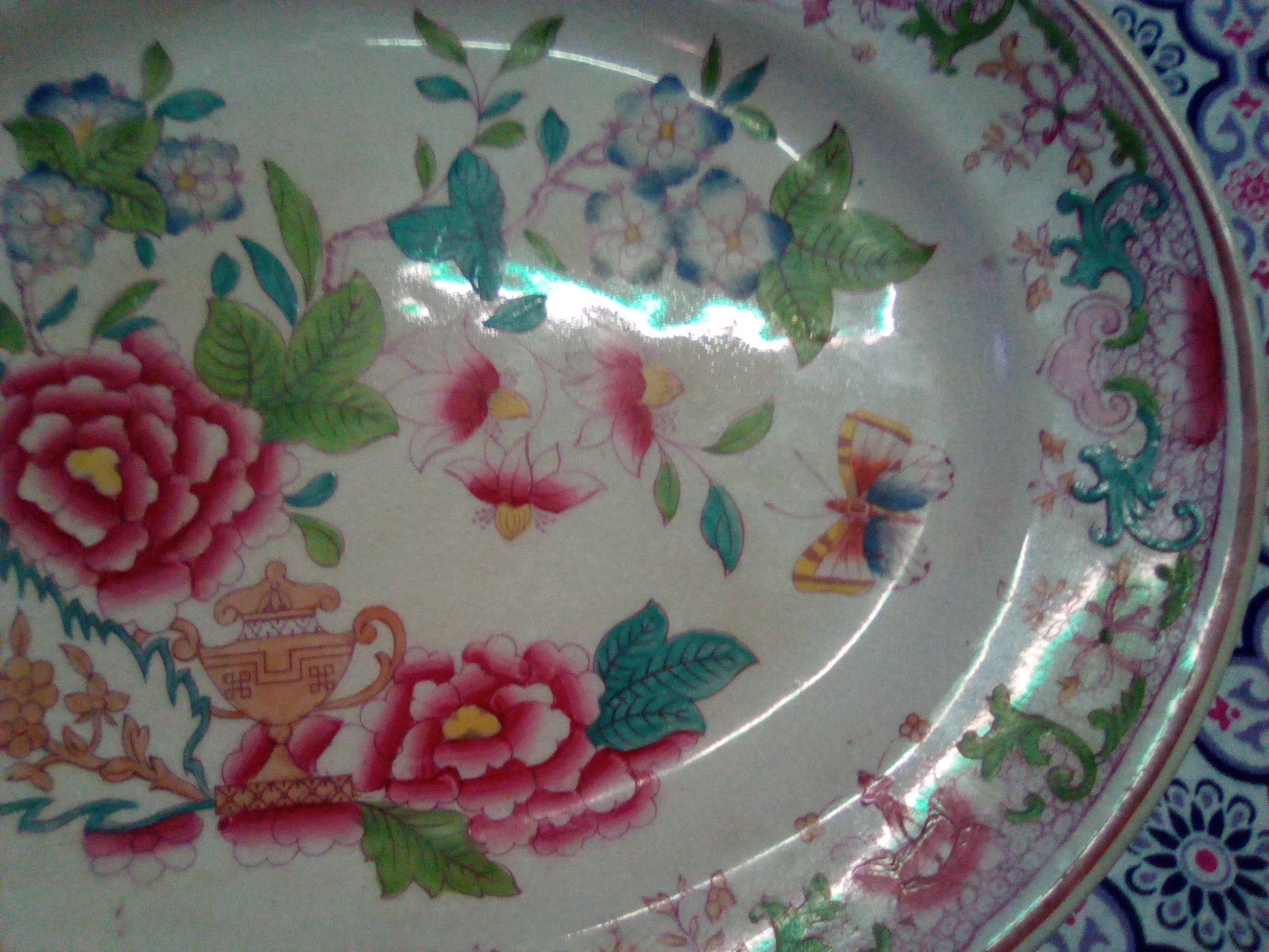 Chinese rose families with lamp and butterfly done in traditional 5 color theme.