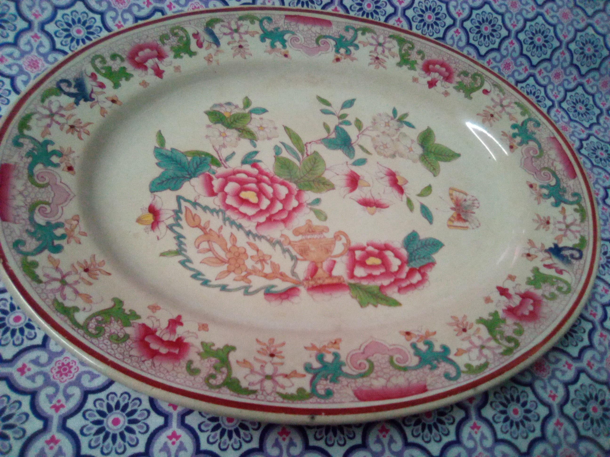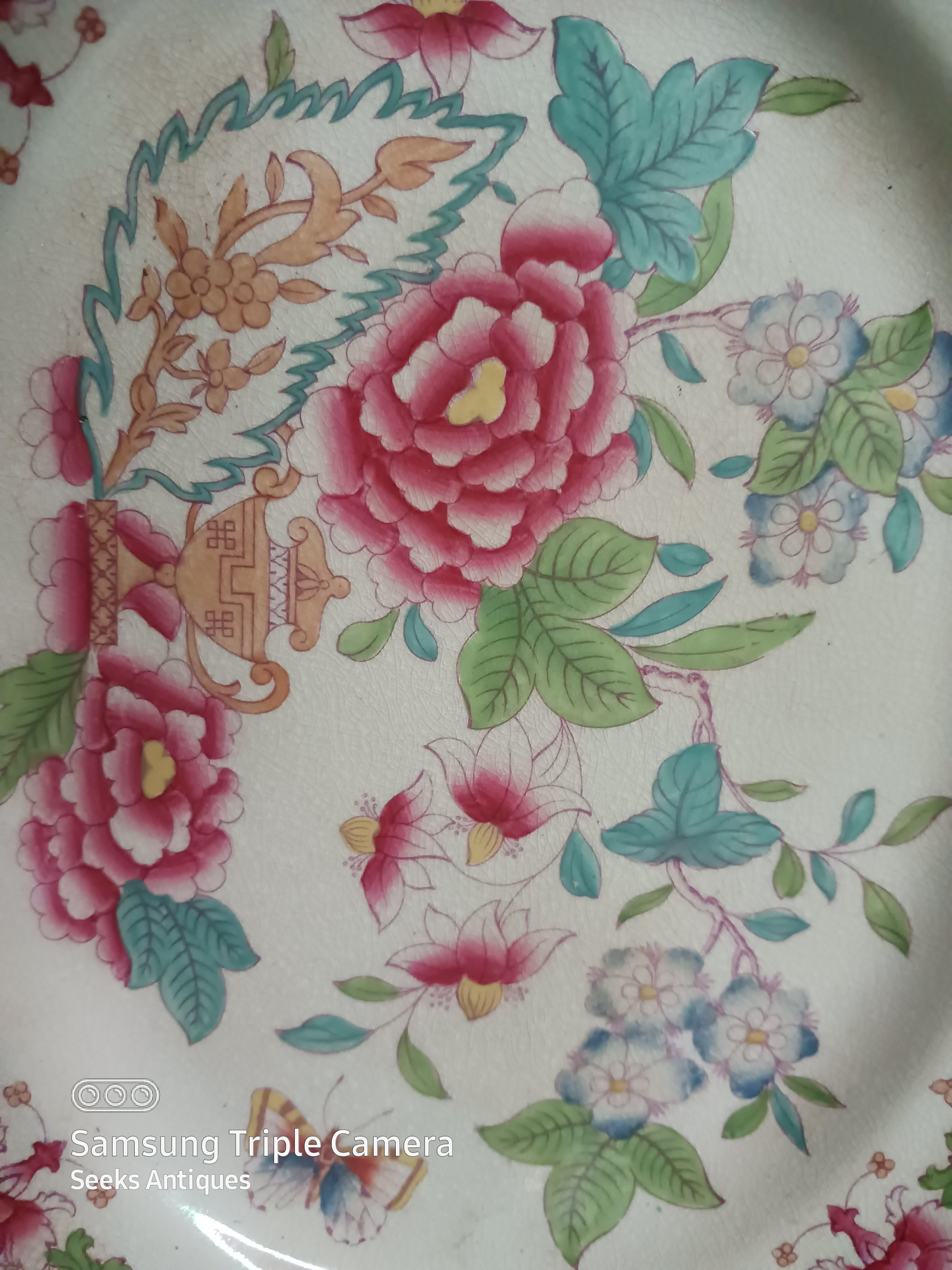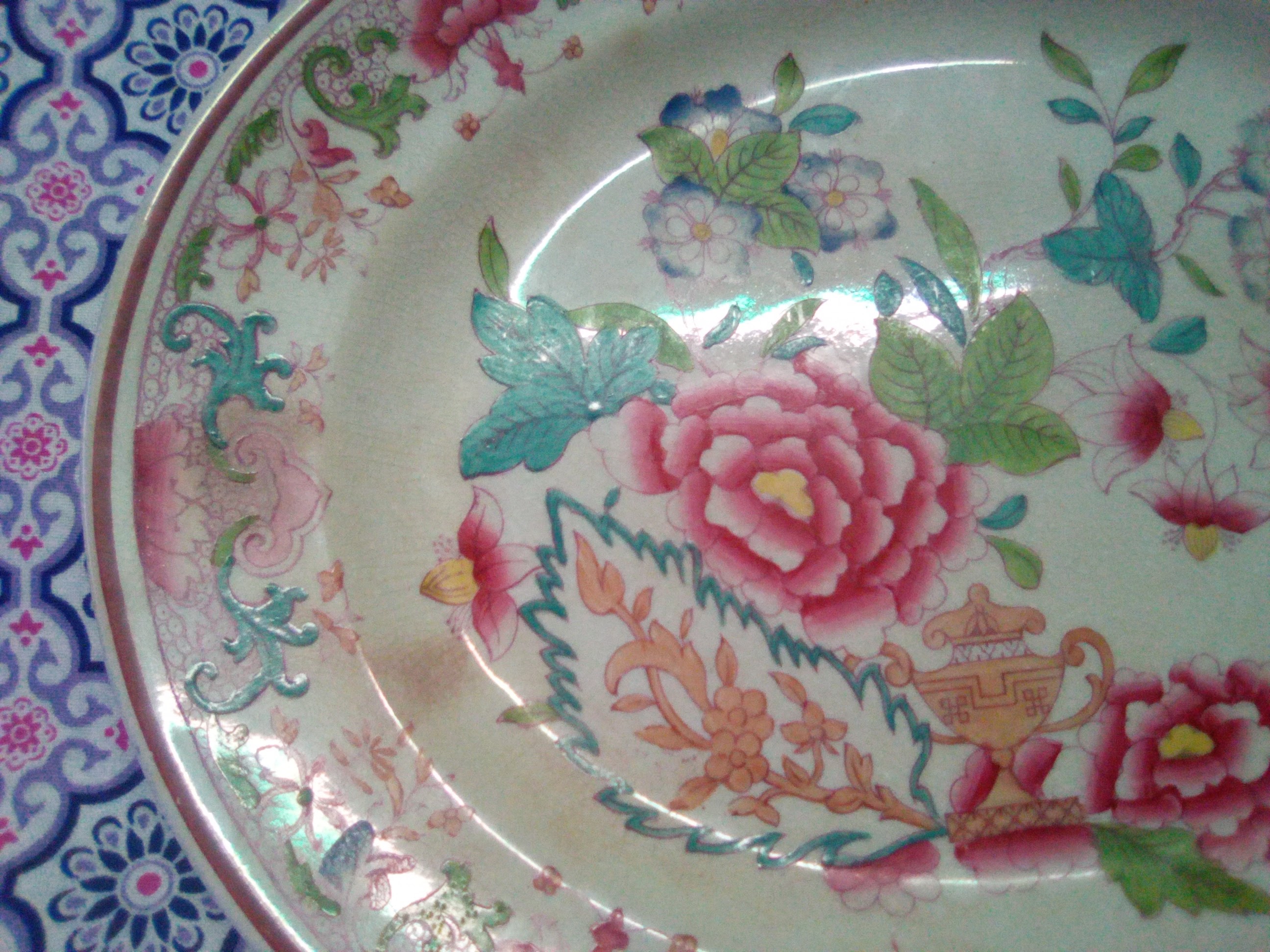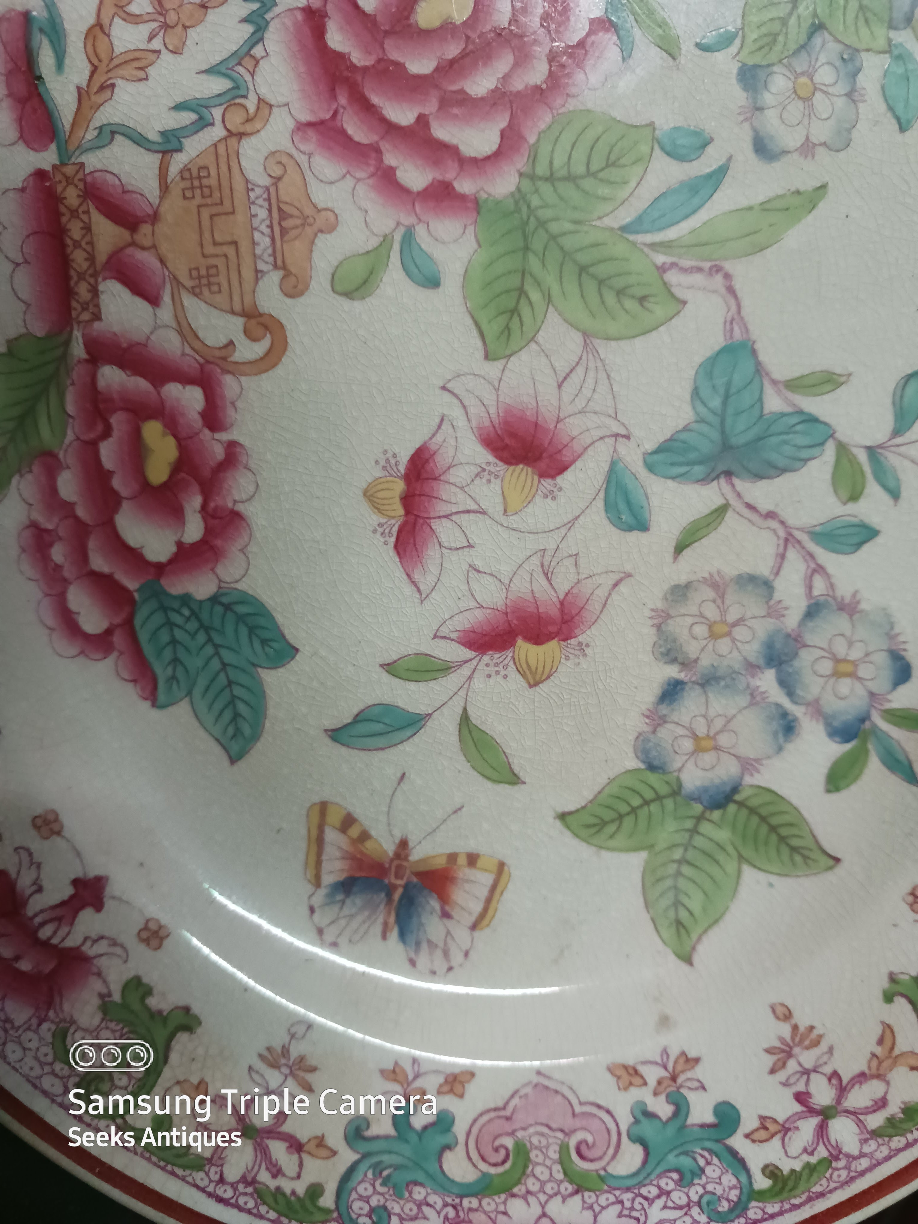 Chinese rose families with lamp and butterfly done in traditional 5 color theme.