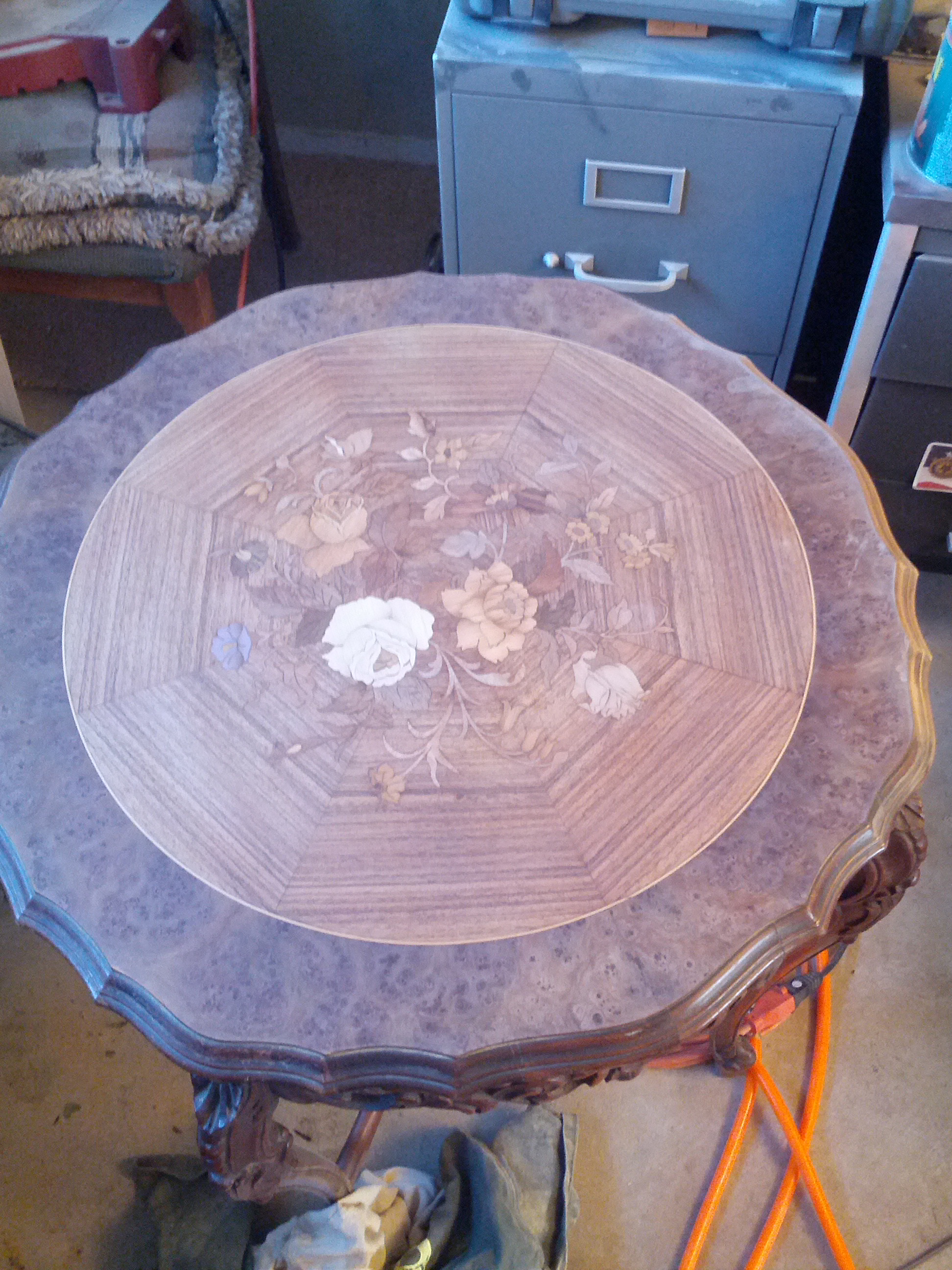 I picked up this table and would like to know the era and any history that may go with it. I have not seen any marks on it and have added a new finish to the surface as it was not taken care of through its last owner and had glass water marks all over it. Any value of the table is a plus. I know it is hand carved on the skirt as I can see the tool marking. The carving is good with no issues on the finish. Thanks