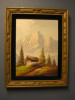 It is an intersting piece that looks like a scene from Europe, the frame is even more fscinating to me, it is an old 'double ' frame the has real Gold( i believe) on much or the frame and someone long ago painted this ugly gold paint over it. Maybe to try and hide the real value, I have no idea