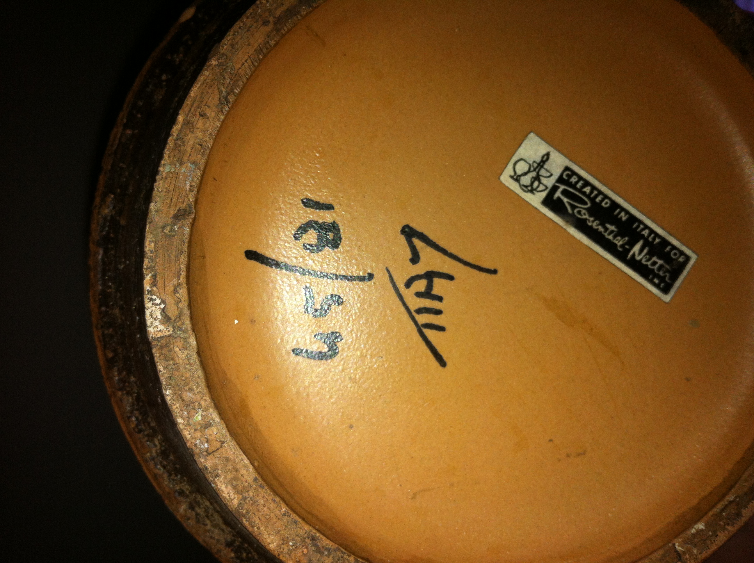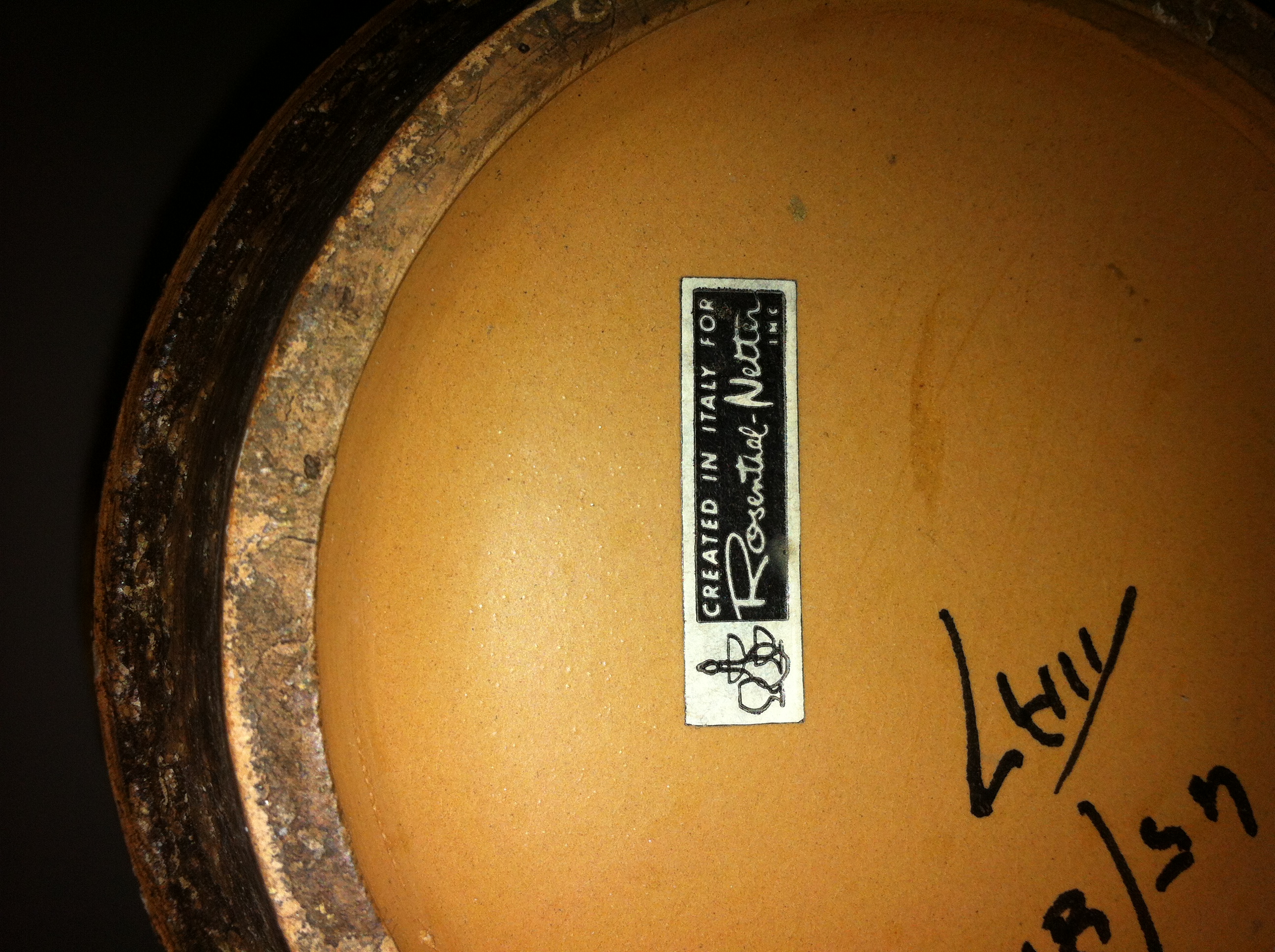 This is an Italian Pottery piece that was made for Rosenthal Netter. It is in excellent condition, the bottom is signed and the sticker is still attached.