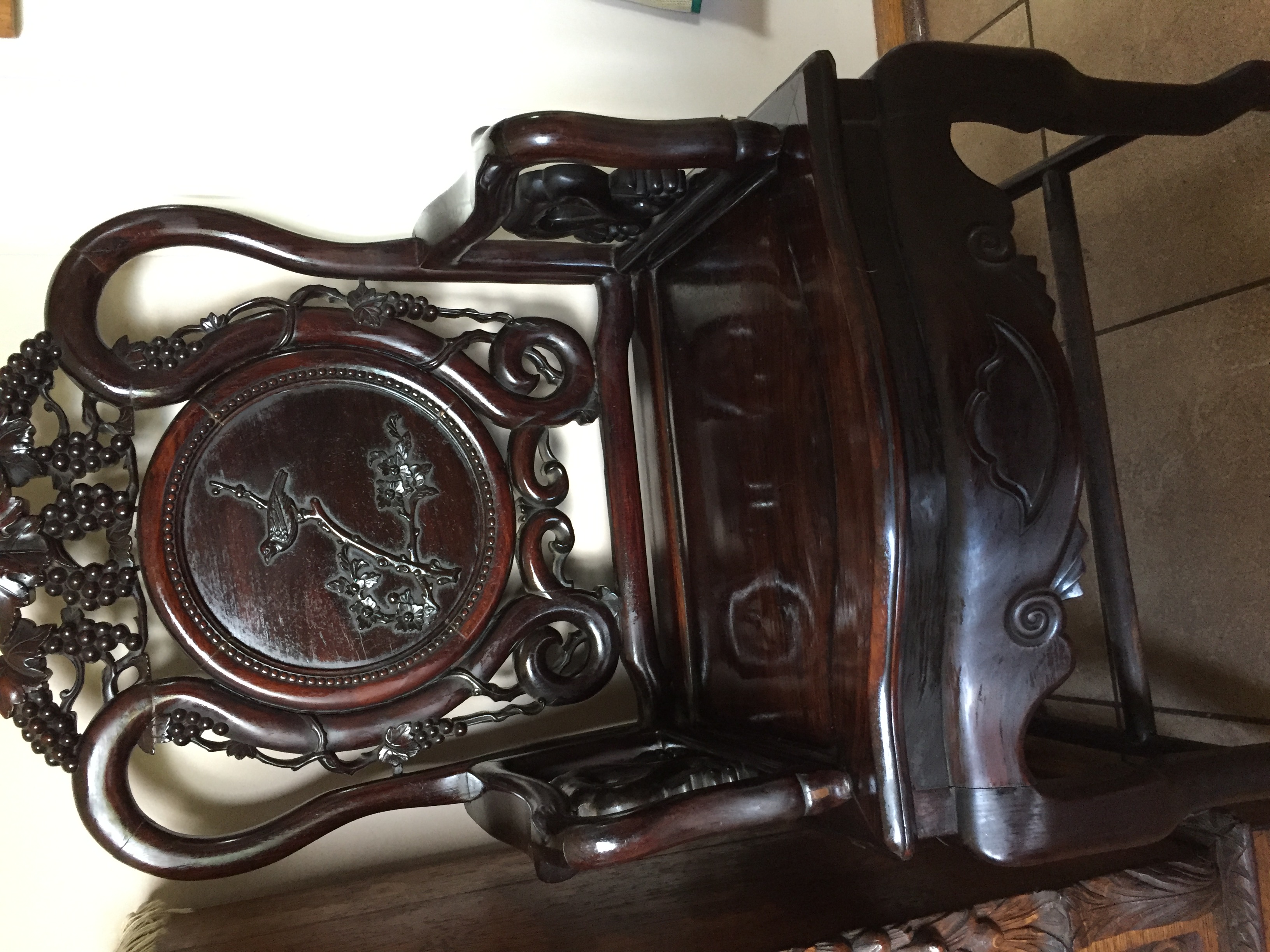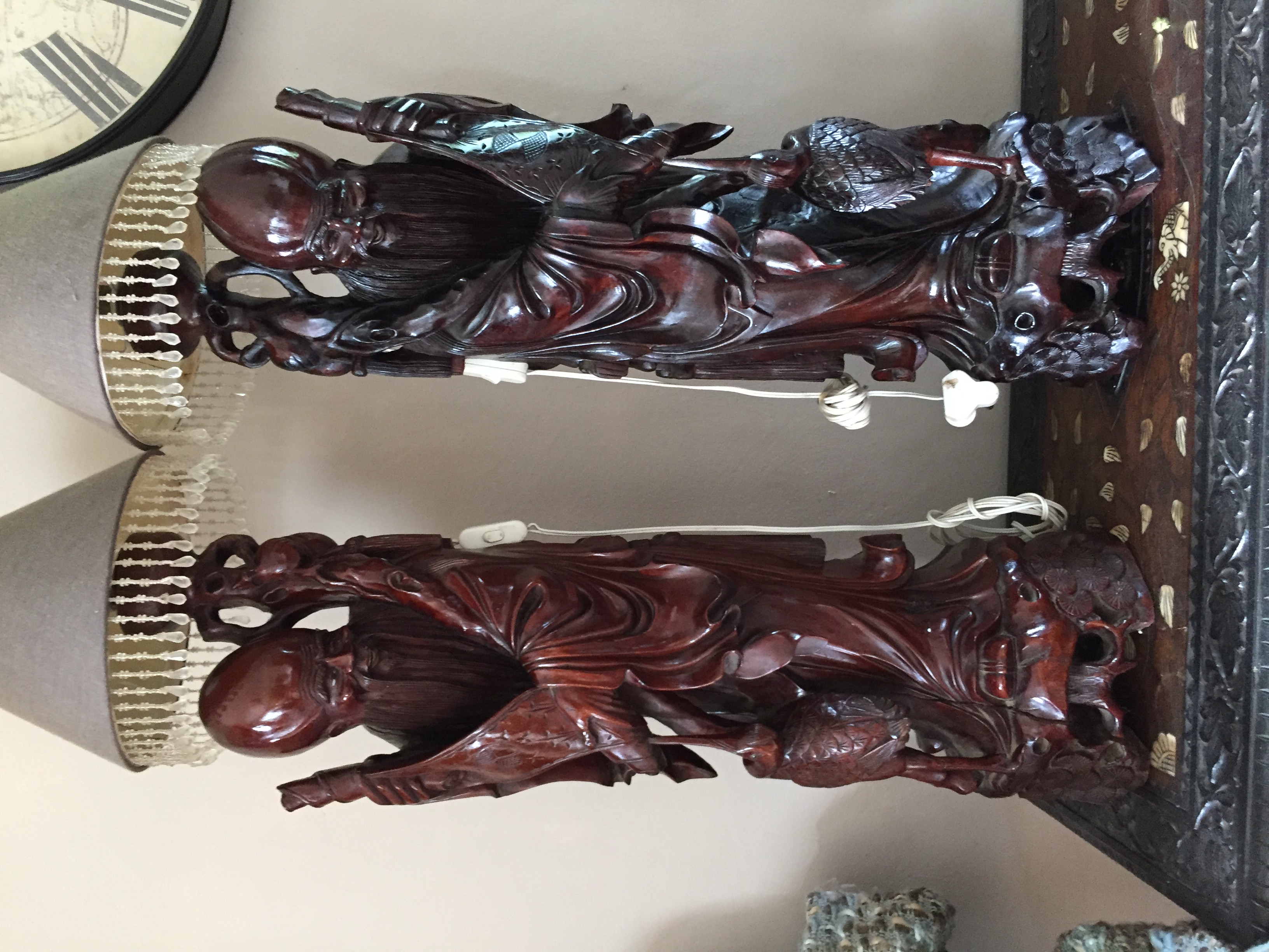 Large Rosewood Carver and pair of Rosewood Chinese lamps looking for a valuation o this items