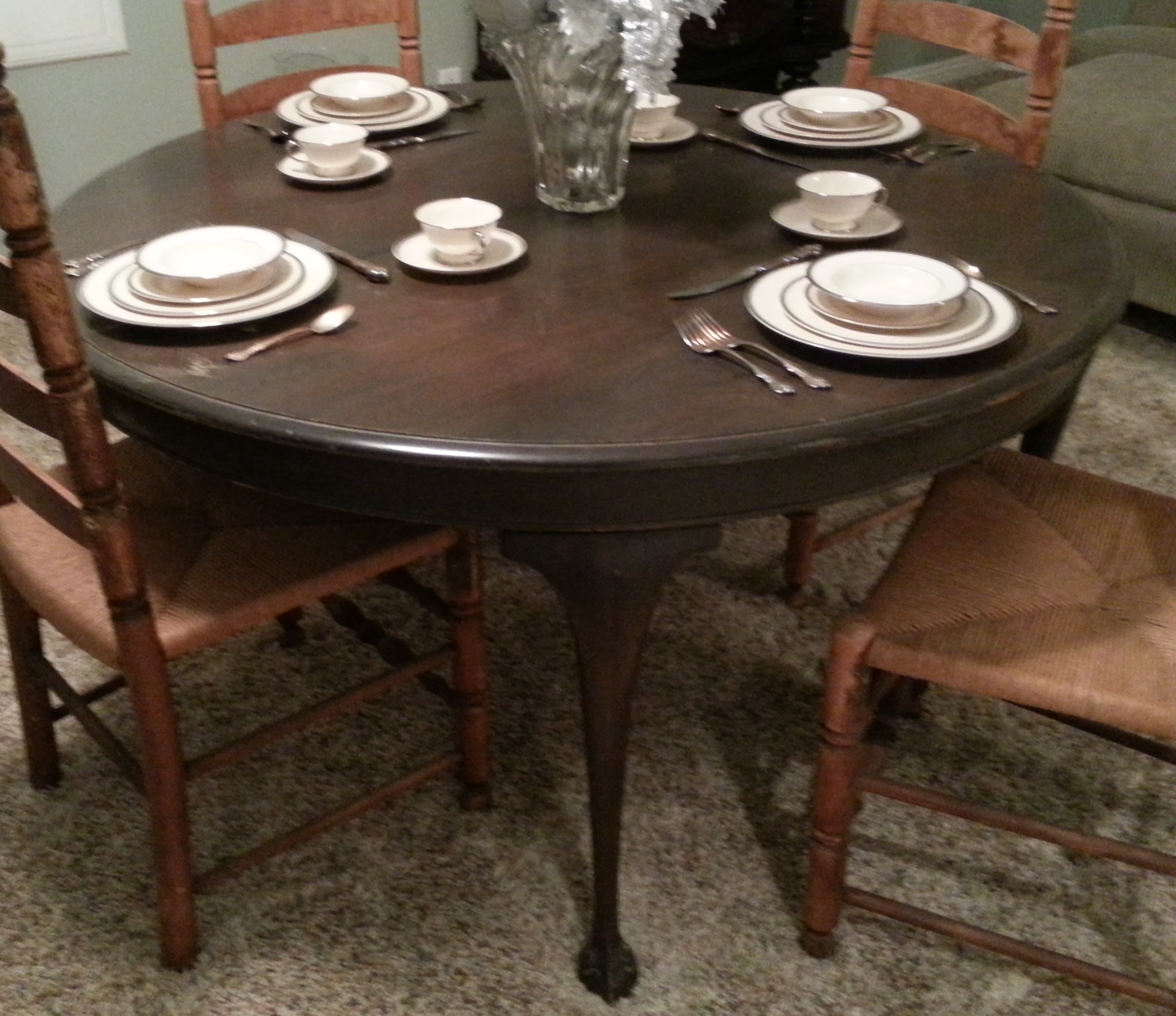 This table came with the ladder back chairs, I've had them for a few years I am curious to find out the information on this table. Their are a few scratches on the table surface and legs.
