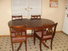 I do not know a ton about this set. I cant find anything on the maker... I see other sets like this one for sale for quite a bit more than I expected. I do have the six chairs and the leaf. There is one medium bad/rough spot on the table. It has rollers on the paws.... very nice