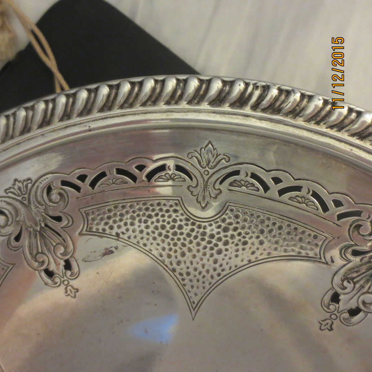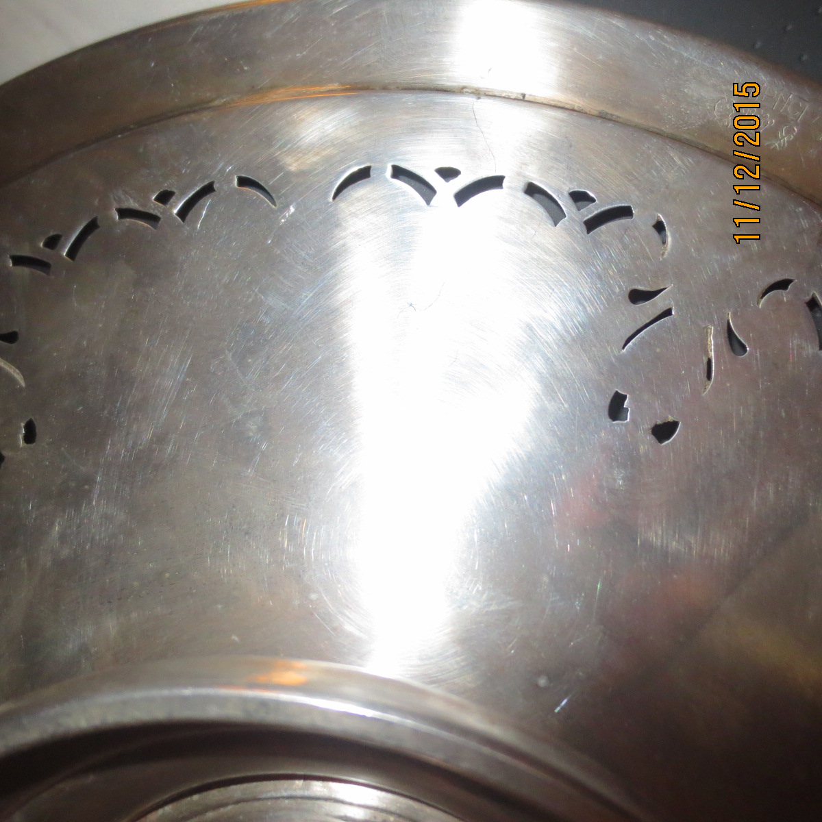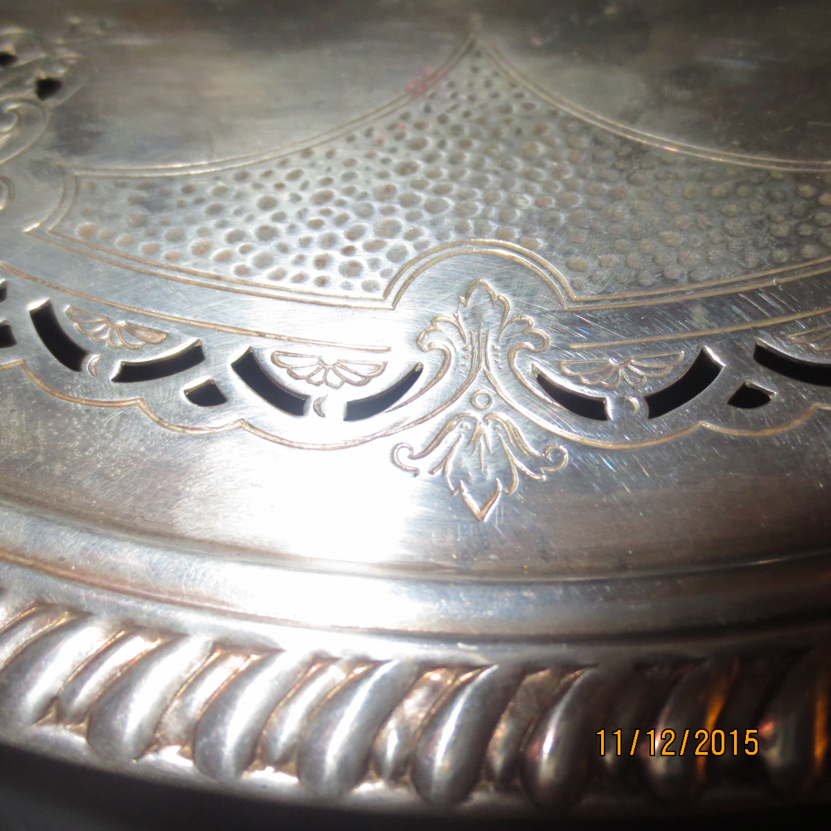 This is a around plate. has rope trim, detail engraving possible a fruit platter?. has marking Crown and 2 other symbols under the EPC 285. Can you please clarfy the marking and its value thank you