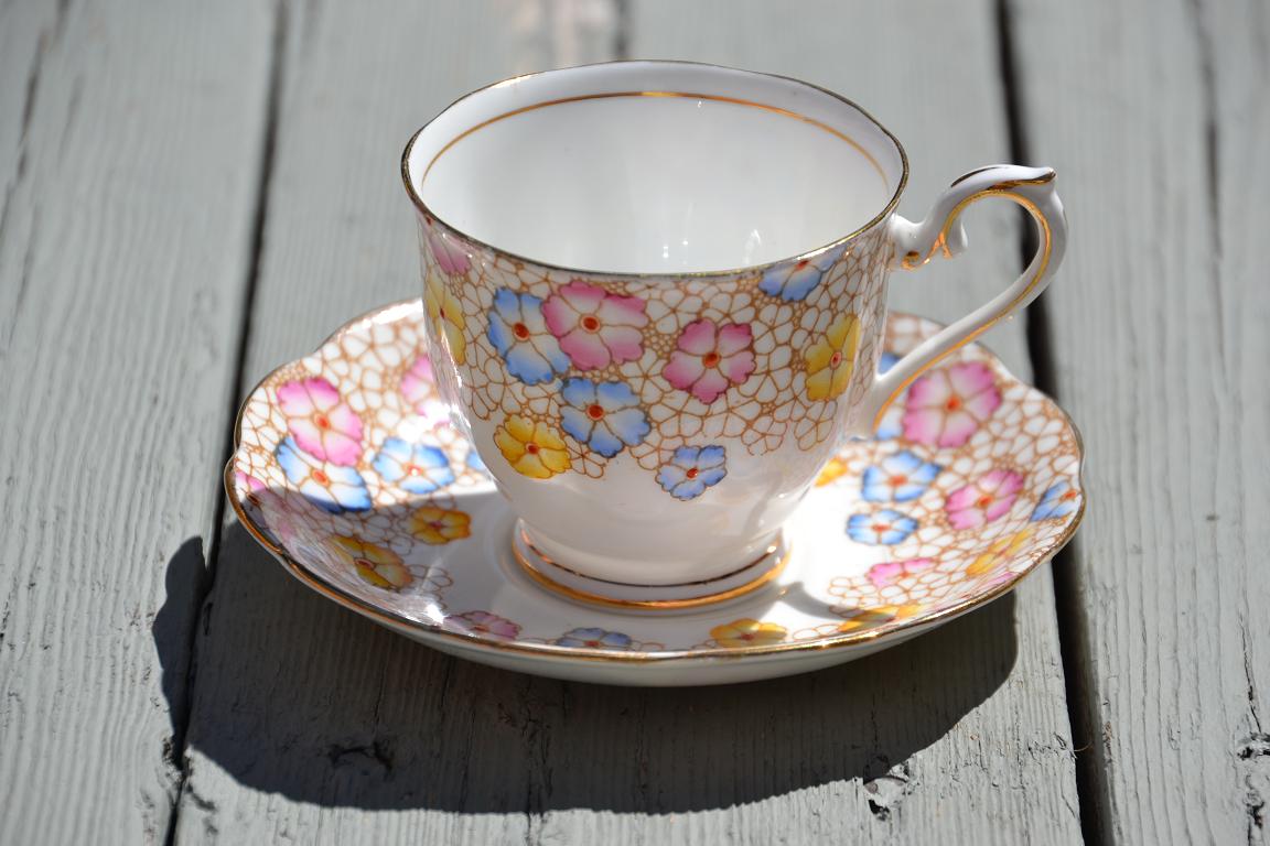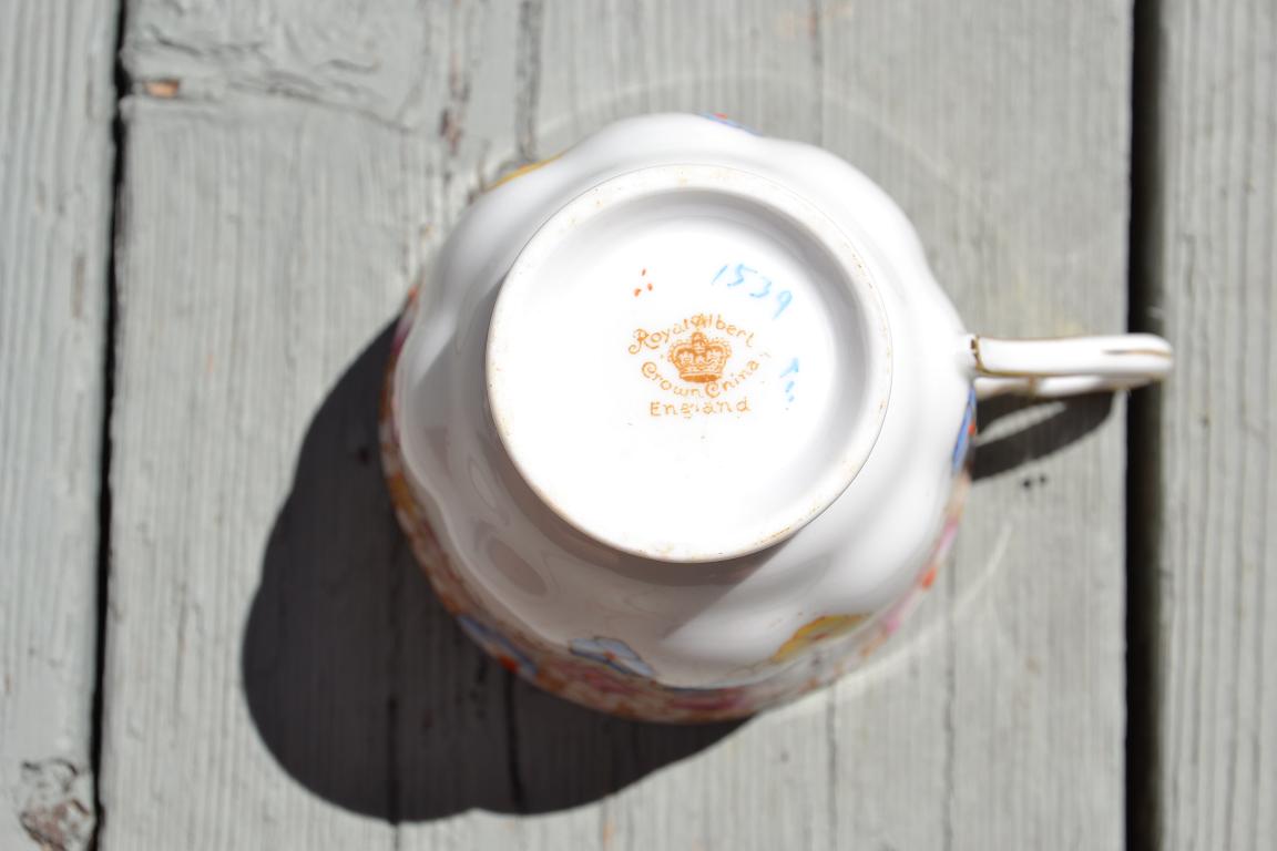Royal Albert Crown China England. This teacup and saucer set is outlined in gold and has blue, yellow, pink, and white flowers. On the bottom is the number 1539 if it has a significance or not. I am looking to see what the value of the set would be and might be interested in selling it.