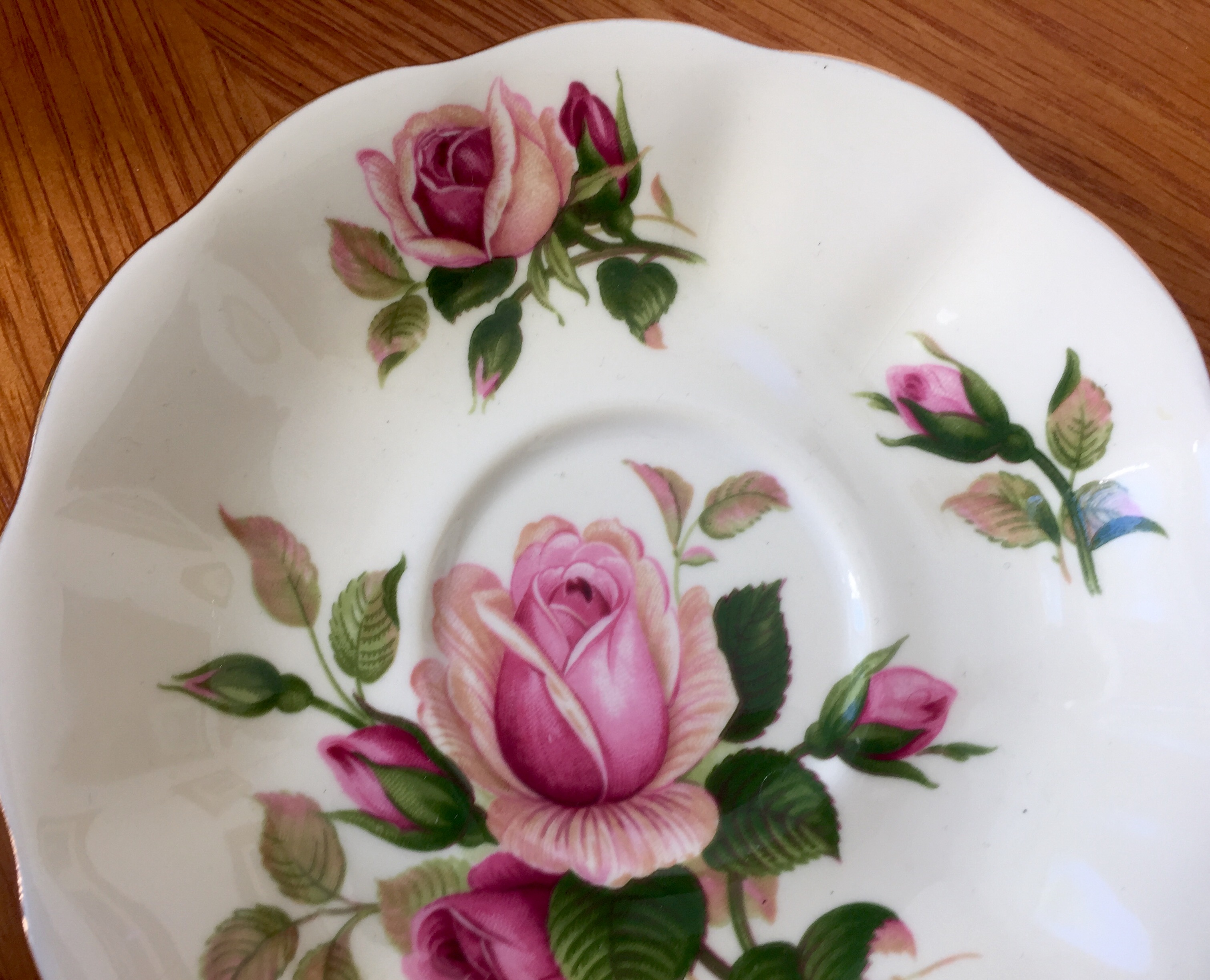 I have a set of Royal Albert “English Rose” bone china made in England. There are 6 cups, 6 saucers, 6 bread and butter plates, 1 sugar bowl, 1 pt milk pitcher, 1 10” cake plate.