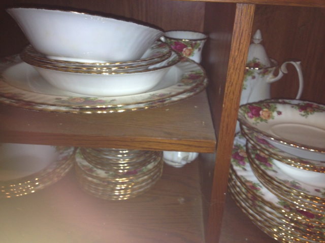 This is my Step Father's set. He has the full bone china set didn't take the time to take picture of the entire set but I can if necessary. The stamps on the bottom are shown in the picture provided above. He was wondering of the value of the coffee pot by itself, though we would like to know how much the full set is worth seeing as he owns the entire set.