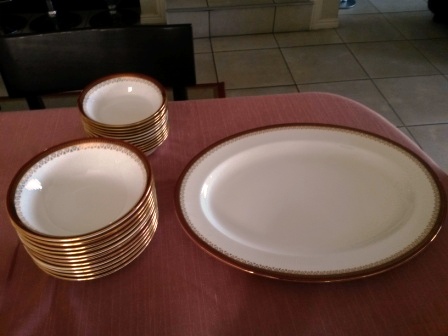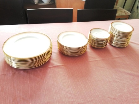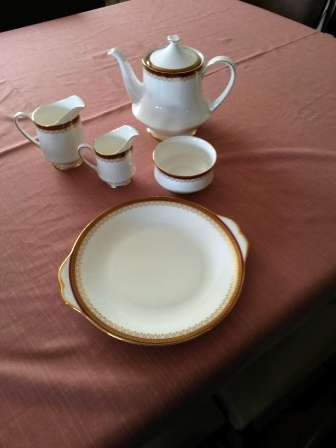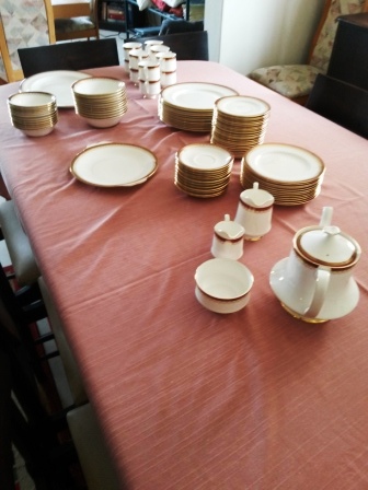100-piece Royal Albert Paragon Holyrood China Set. Includes, cups, saucers, sideplates, small plates, dinner plates, cakeplate, meat plate, small bowls, big bowls, teapot, 2 milk jugs - 1 big, 1 small. Was purchased in the 1980's.