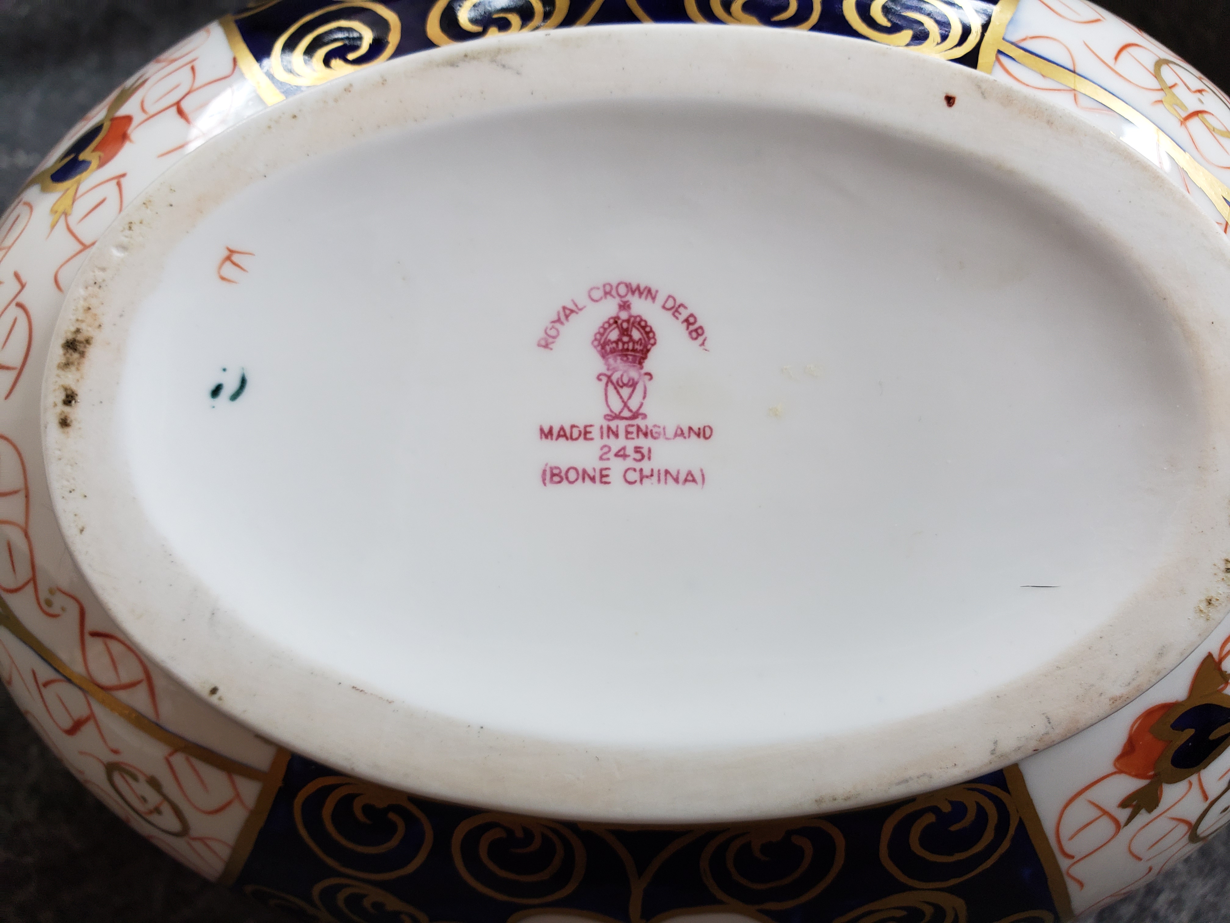 Red Royal Crown Derby marking with Made in England below it. Pattern 2451