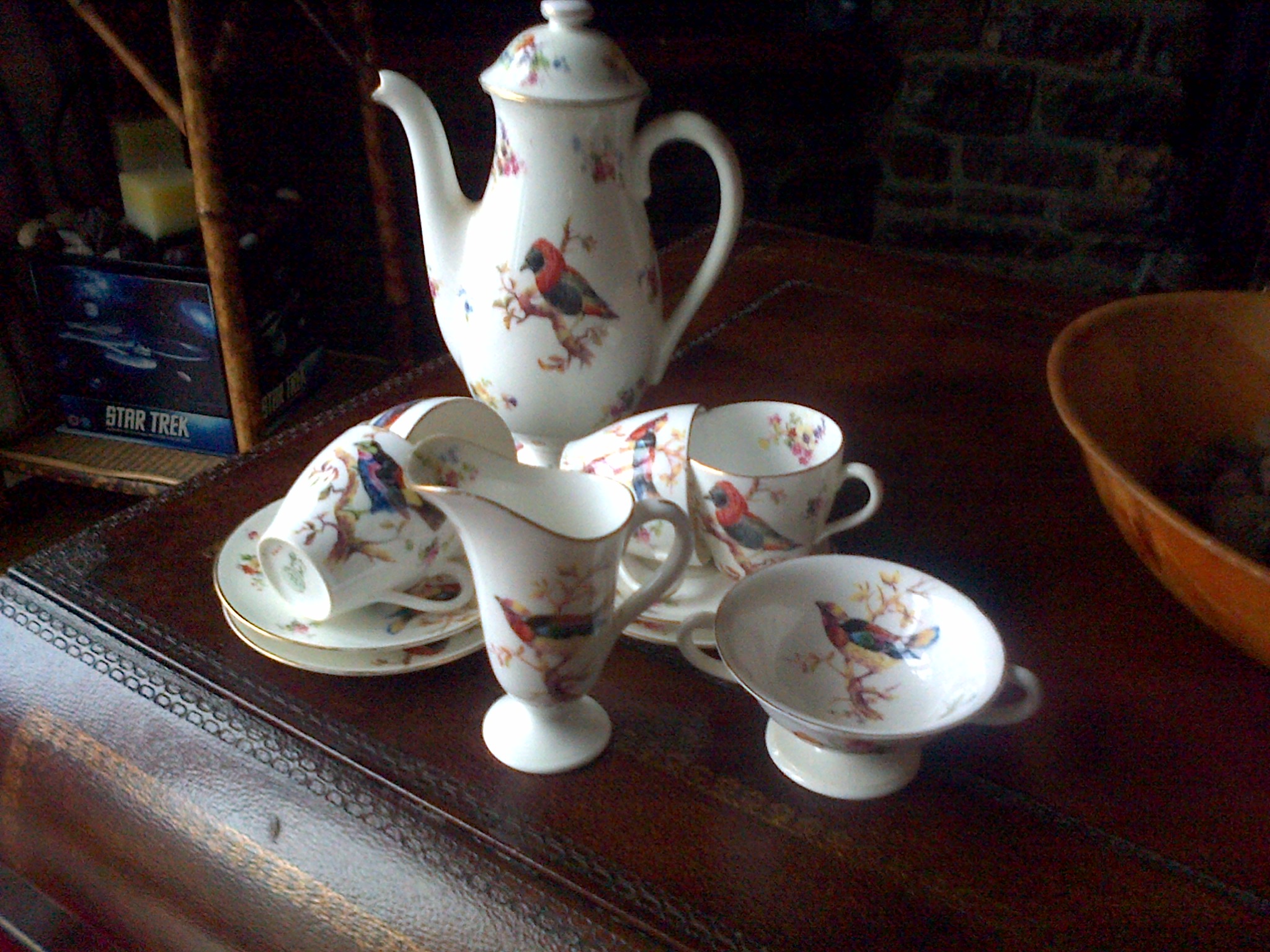 A Royal Doulton coffee pot,sugar bowl,milk jug 4 cups & saucers