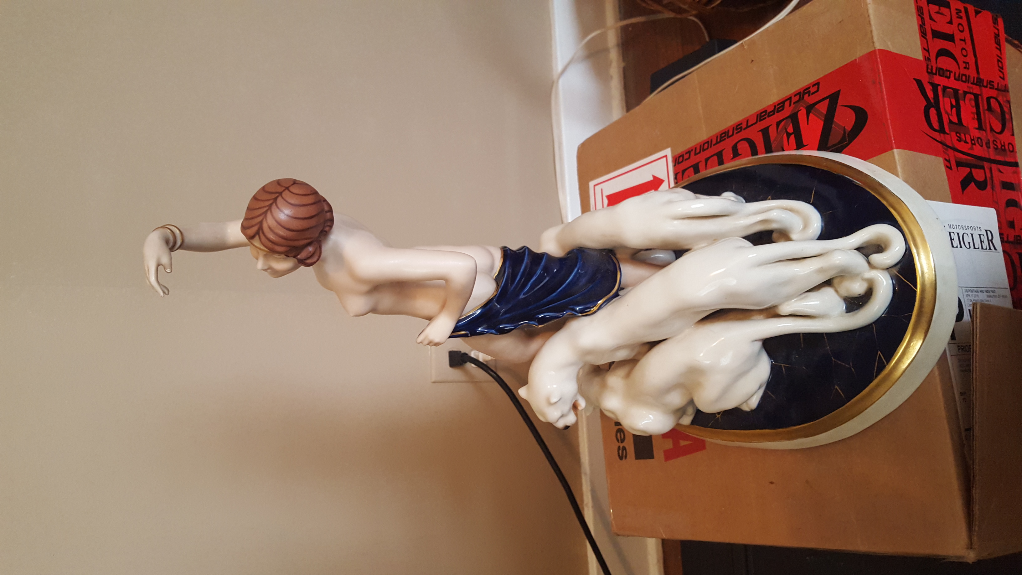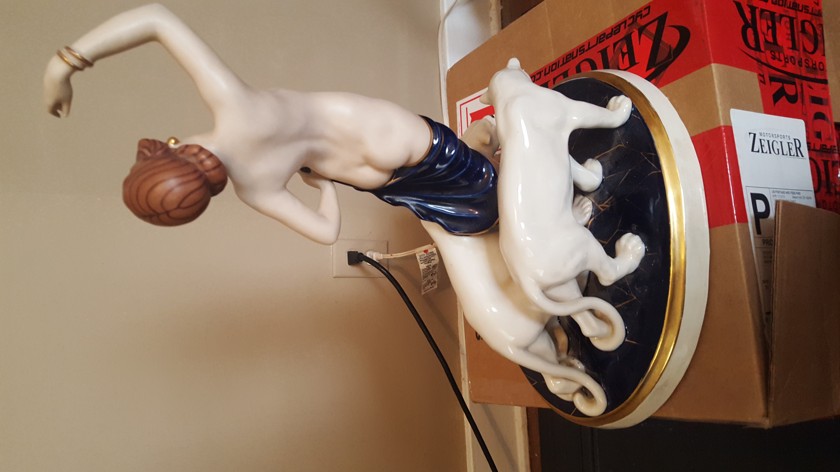 - Royal Dux Bohemia sculpture, made from porcelain depicting a Nude Lady and 3 lioness's.