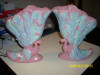 I found this Royal Haeger by Royal Hickman pony vase at our local flea market. He stands a little over 12" high. His mane is parted where flowers can be placed. He has no ware #, and I have been unable to find another exactly like him. His glaze is a chocolate brown with green. He has one small chip on the underside of the base. He reminds me very much of the Paden City/Mosser Grecian Ponies. He is in excellent condition.