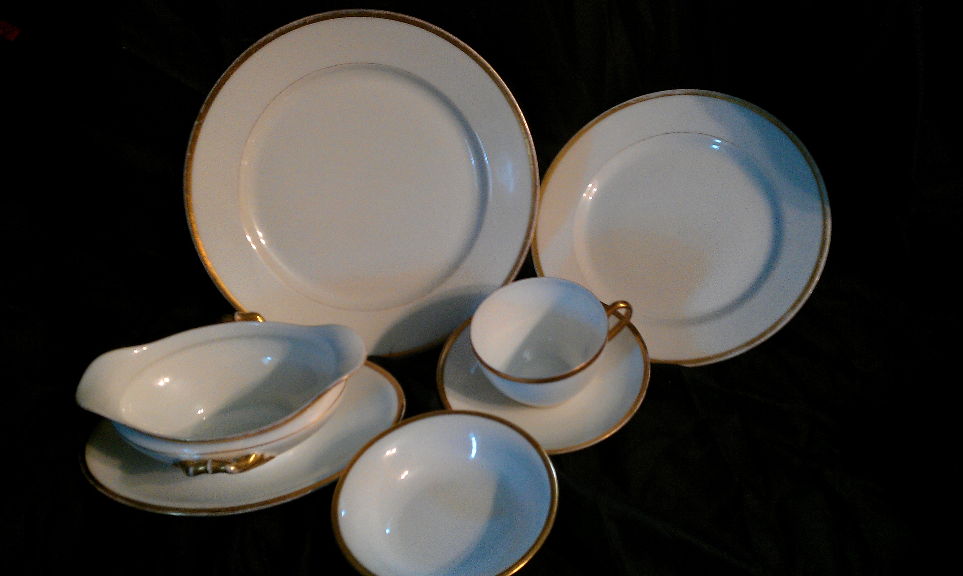 The set is not complete, but is 54 pieces. My grandmother said at one time, her mom's set was complete. The missing pieces were broken, or damaged when they moved. This set contains: 1 16" long oval platter, it has #28, and an additional mark: 513/ IV-in Roman numeral style, for 1, and 5.