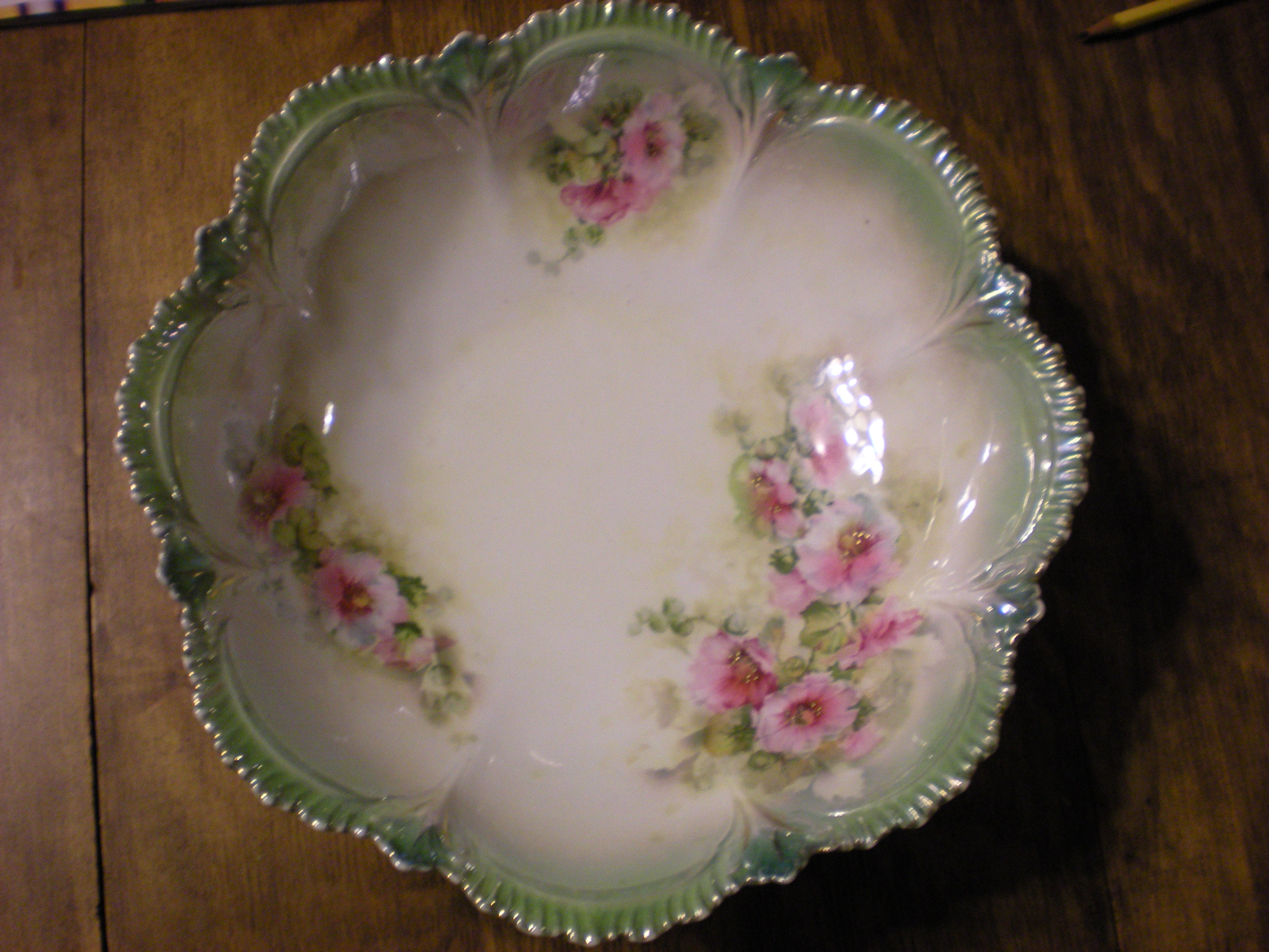 Large Round serving bowl with scalloped edges.