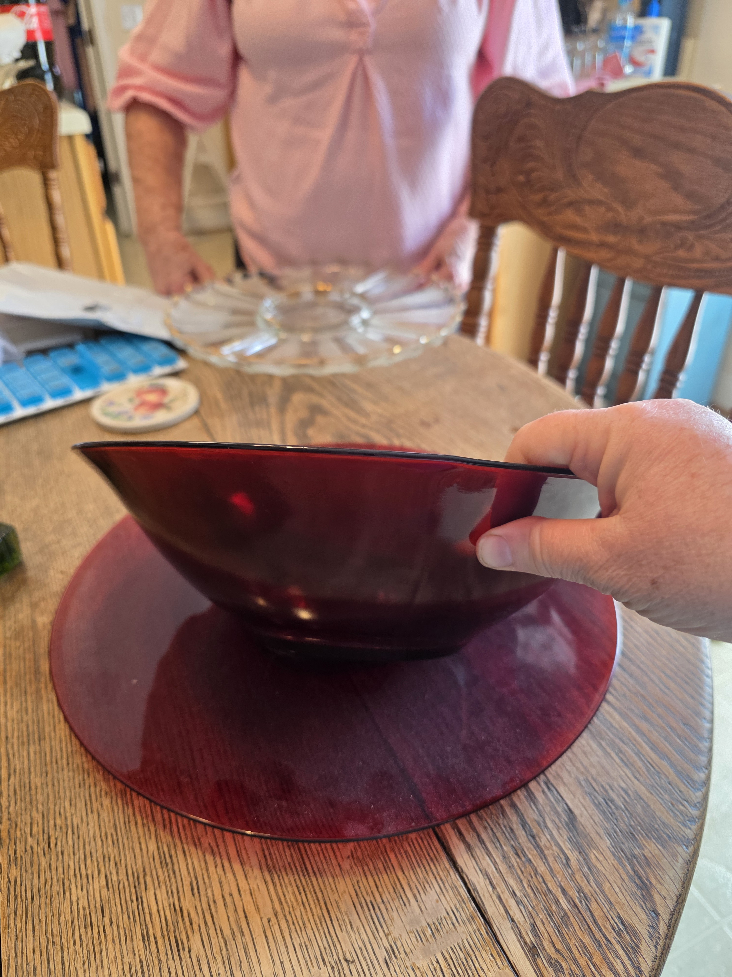 Ruby Red Salad Serving Bowl. Dating to Mid-20th Century. Unlock the full appraisal for complete details.