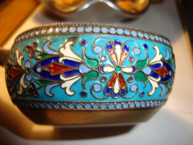 silver and ceramic has a small chip needs cleaning it ia authentic russian from the 19th century
