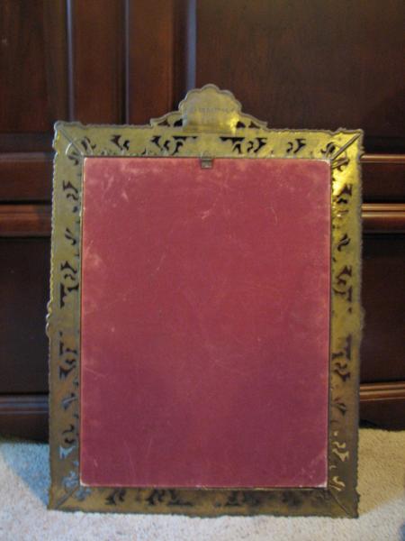 It looks like a brass frame and the picture is set in a bubble glass.