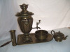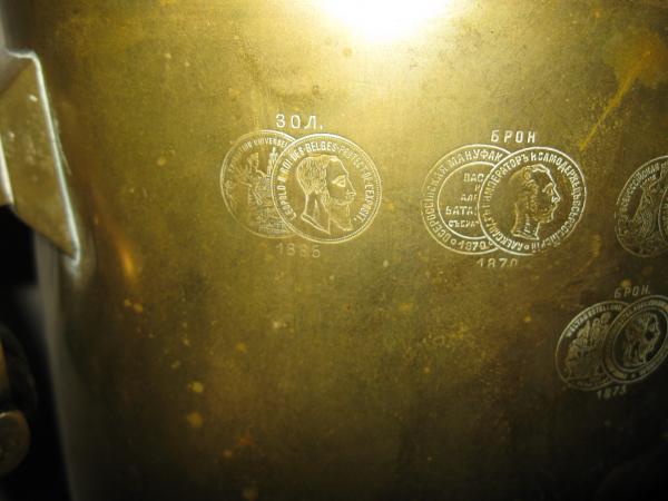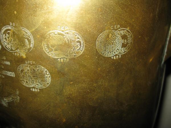 My family emigrated from Russia at the turn of the century to flee from the coupe of the Russian Czar and his family (the Romanovs). My family worked in one of their vacation homes or palace and in the midst of the overthrow grabbed what they could in order to pay their way to New York. This was one of the items that did not get sold and is now passed on to each eldest daughter on my maternal families side. There are several date stamps and minimal damage to the actual piece and the teapot has been lost over the years. All of the etchings are legible, although I have no clue what they say.