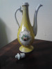 It is made out of brass or copper and it has two handles and and a spot underneath for a candle that serves as light and heat.