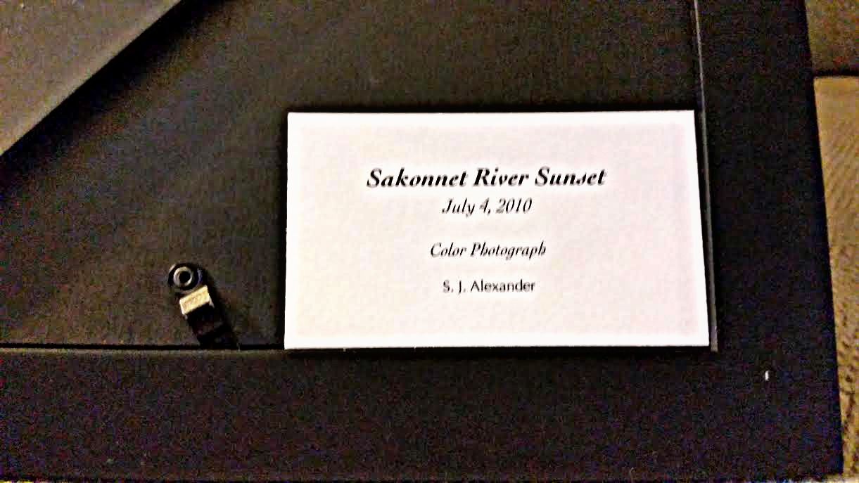 We received this framed photograph entitled "Sakonnet River Sunset" by S. J. Alexander as a donation for an auction to benefit orphanges in India. The total frame size is 10" x 12" and photograph appears to be a 5" x 7". It's dated July 4, 2010 an is in excellent condition.