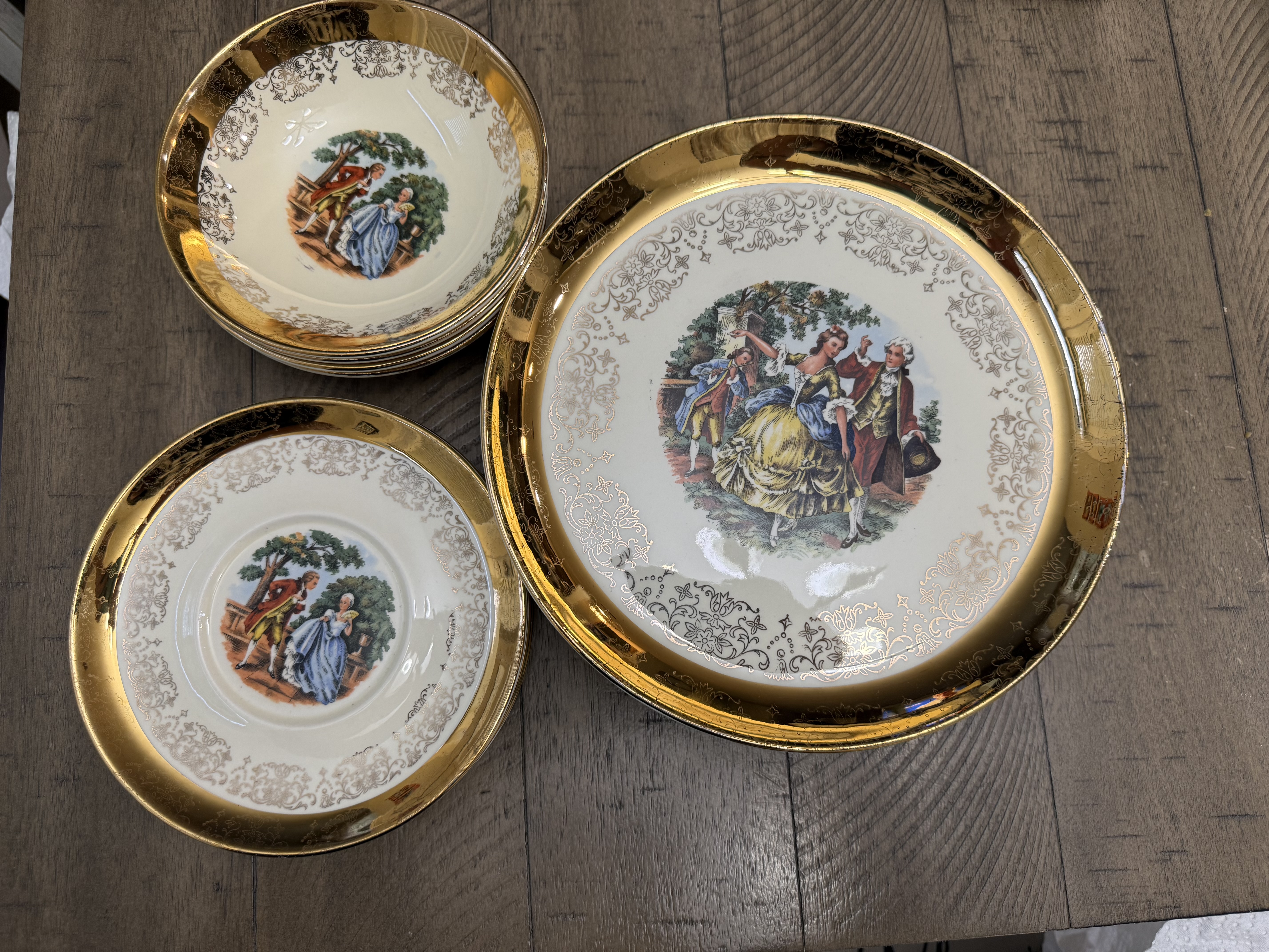 Condition Assessment: The set is in good condition with very minimal wear. There are no visible cracks or chips, and the gold detailing appears intact, although some pieces may show slight fading typical of age.