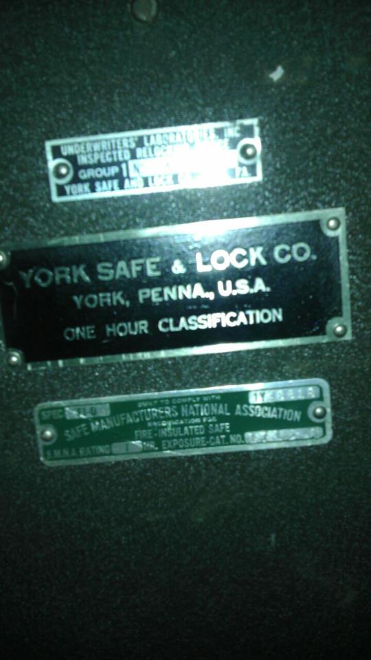 Old safe, manufactured by the York Safe and Lock Company. Not sure of the age of the safe, it is in used condition, and does function.