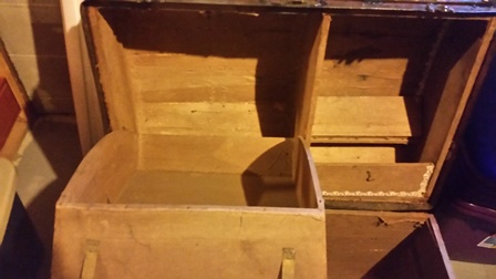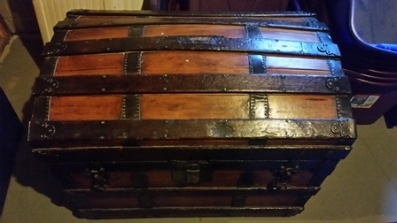 Steamer trunk from Sage's Trunk Depot, Boston MA, Brass Leather and wood solids