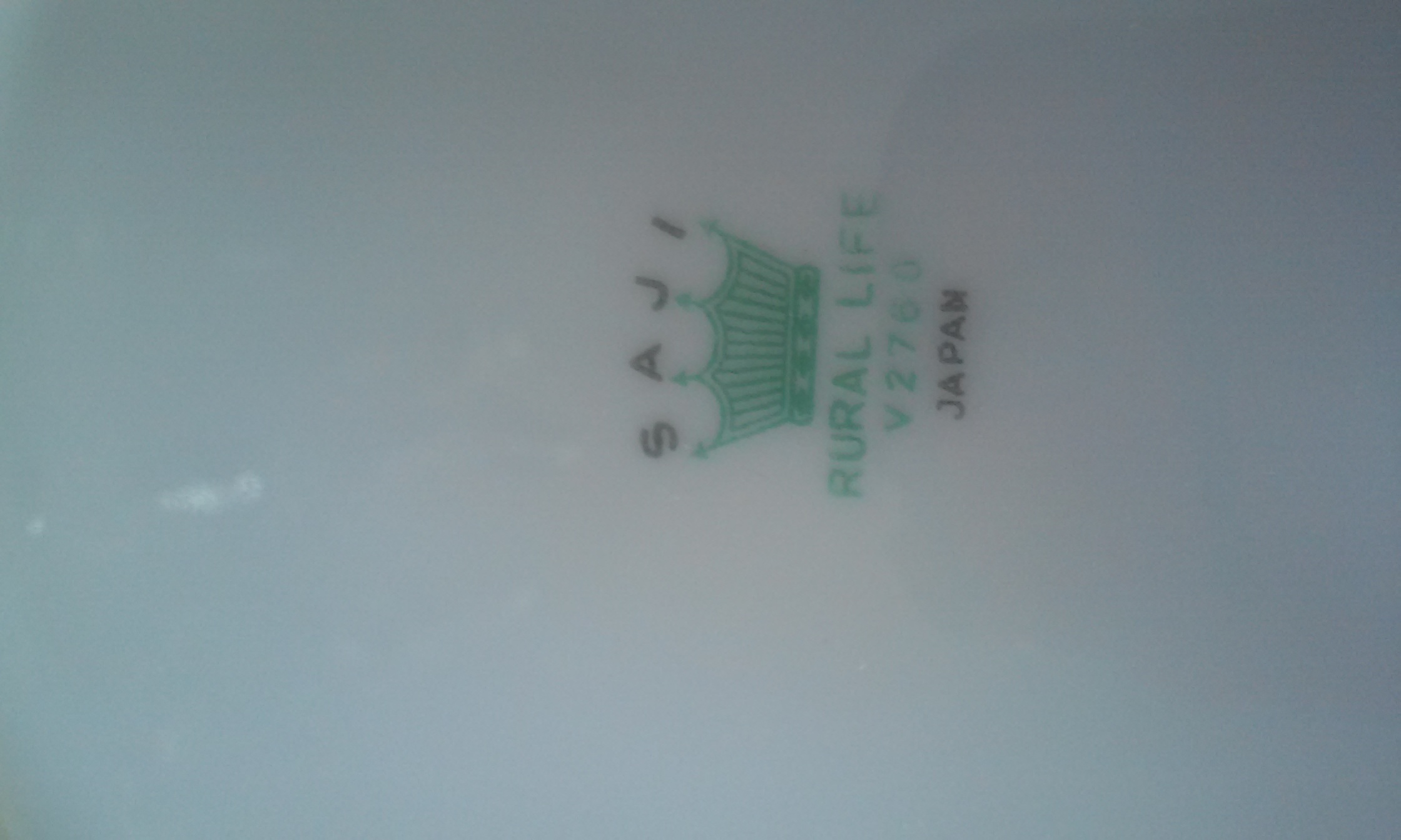 I have a set of Saji china. The logo on the bottom is a green crown and it says Saji Rural Life V2760. I have 11 place settings and a sugar and creamer bowl. I am interested in fnding out more about the set and it's value. I have been unable to find any information online other than a site that has 2 replacement soup bowls for sale. Any assistance in identifying the value and the history of this set would be greatly appreciated.