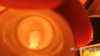 This is a set of 5 sake cups. I say sake cups because I am not sure what else they could be. They are only 1 1/2 " tall so they are most likely for alcohol, not tea. I have no idea how old they are or if they are Chinese or Japanese. They are very light so I believe that they are most likely porcelain. They are a pretty burnt orange in color and the designs are made with gold colored paint. The designs look like clouds and a flying hat to me but I could be wrong. The inside of each cup is white. Instead of flat bottoms each cup has an arc shaped design that ends up making 3 feet/stands for the cups to stand on. You should be able to see this effect in the photographs. The only identifying mark is on the bottom of each cup. I have included a photograph of it. It may be a symbol or it may be Chinese or Japanese lettering. Any help is appreciated.