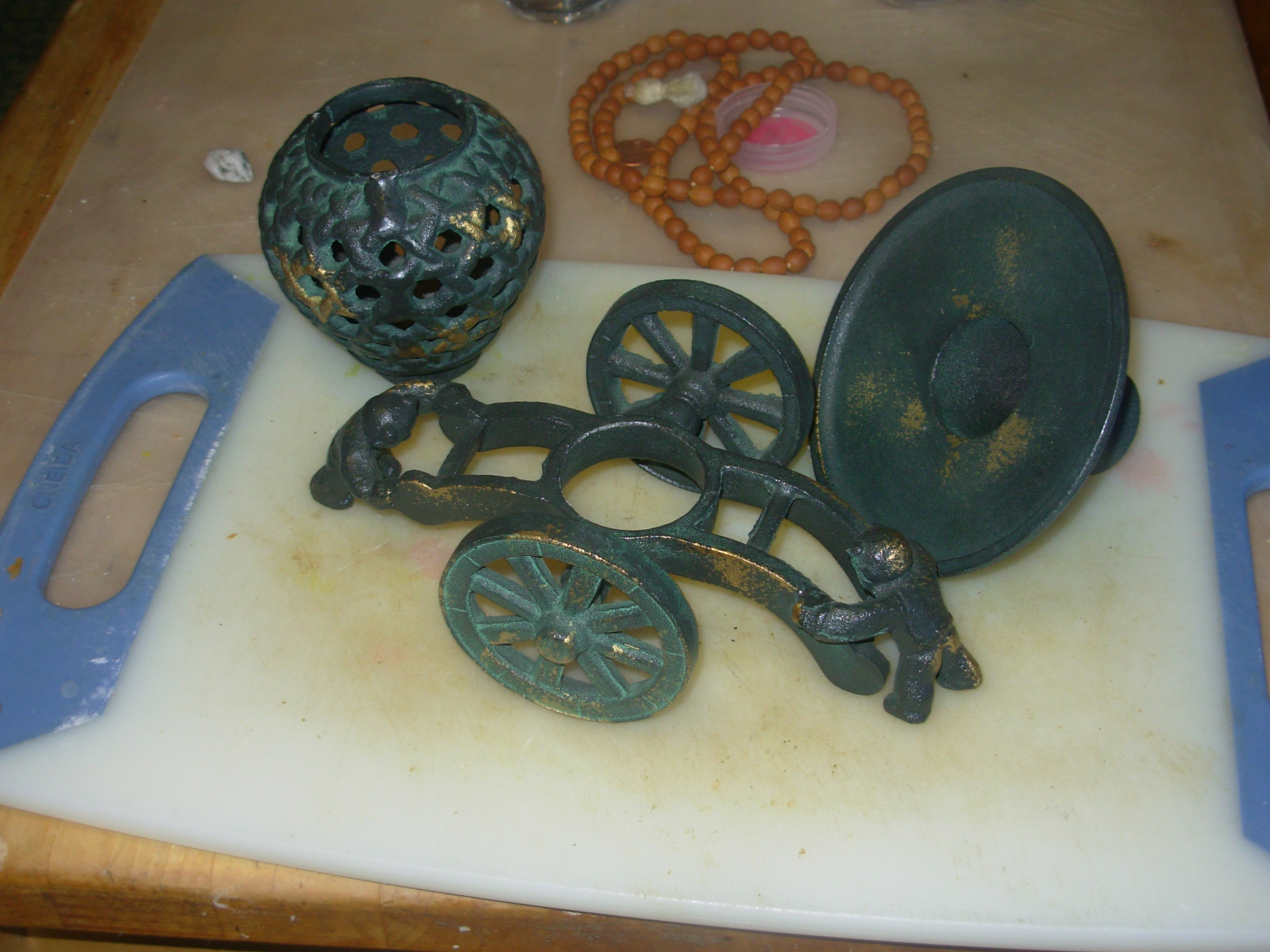 not sure what this is, could be a saki festivale cart. it comes apart and the metal is very soft, i do not think it is gold could be brass