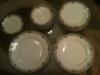 This set includes Soup Plates, Dinner Plates, Lunch Plates, Tea Plates, Sauce Dishes, Butter Pats, 4 large Platters of different sizes, Large Round Fruit Bowl, Covered Vegetable Dishes, Covered Gravy Turrine & Tray w/Handles, Sweet Meat Dishes, Sauce Boat w/ Handle & Tray, Covered Soup Turrine w/Handles, Open Vegetable Dishes. No Pitchers.