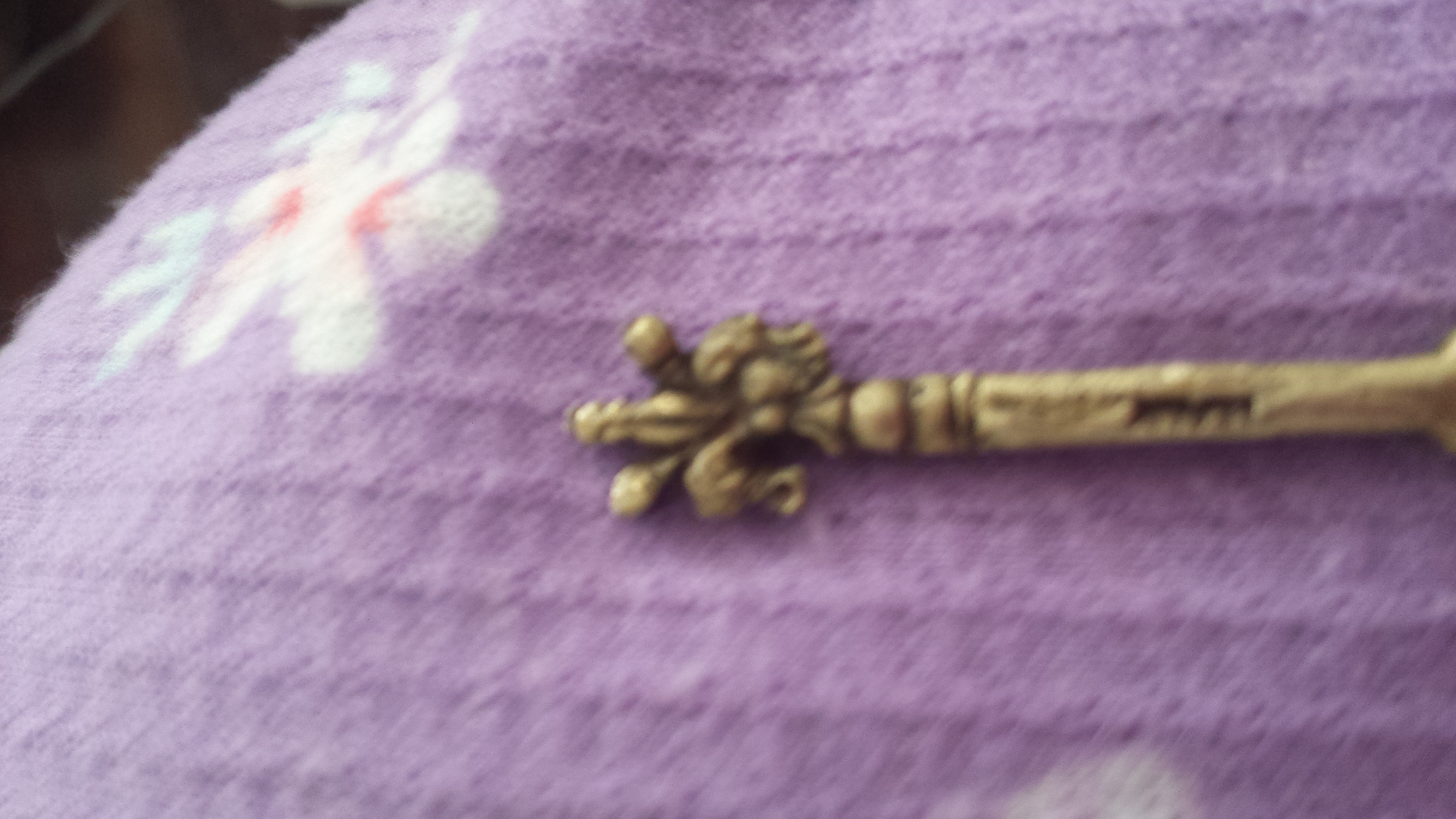 Description 2 1/2 inches long, looks like brass (gold colored) has Italy stamped on back. Decorative top.