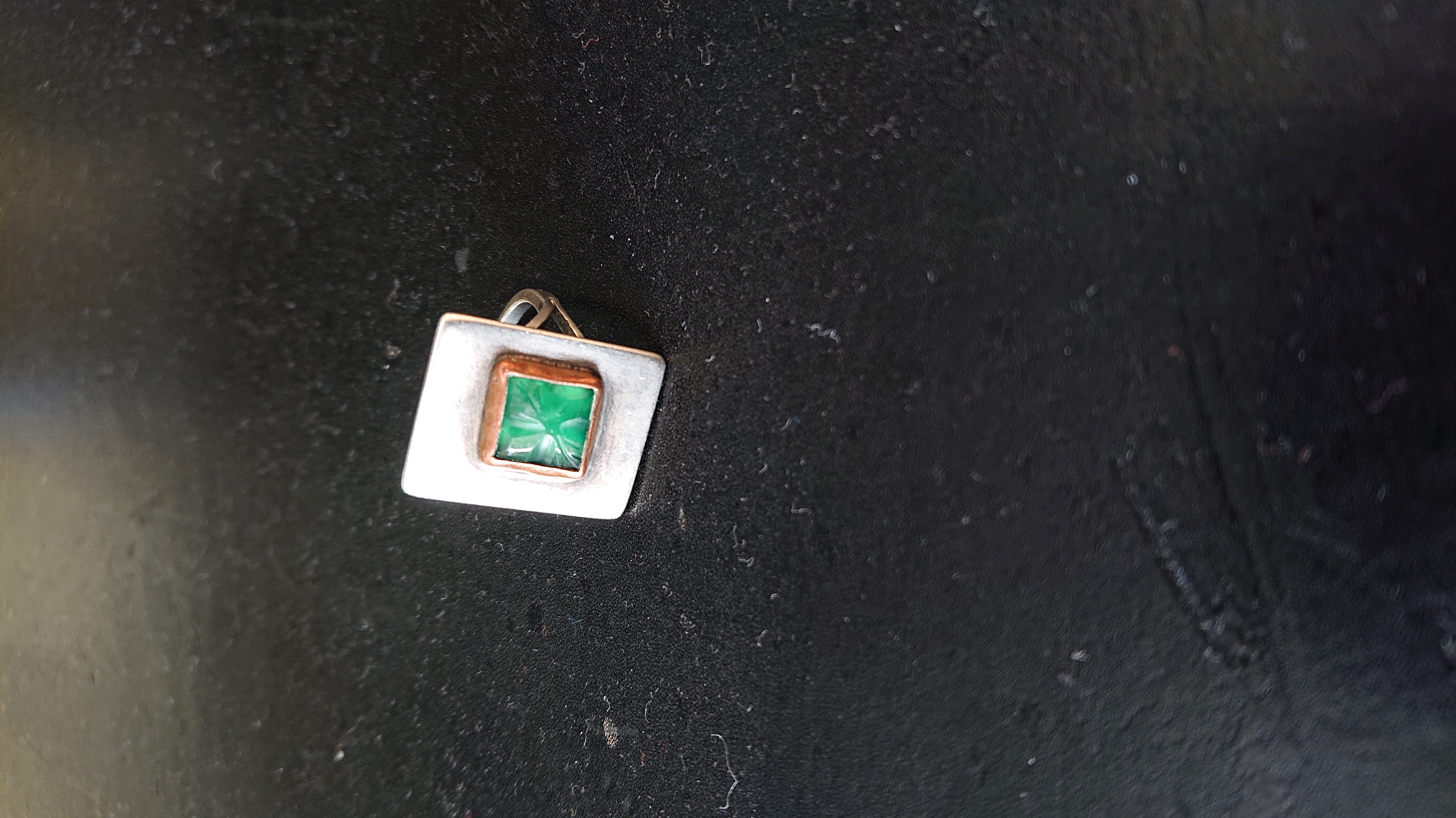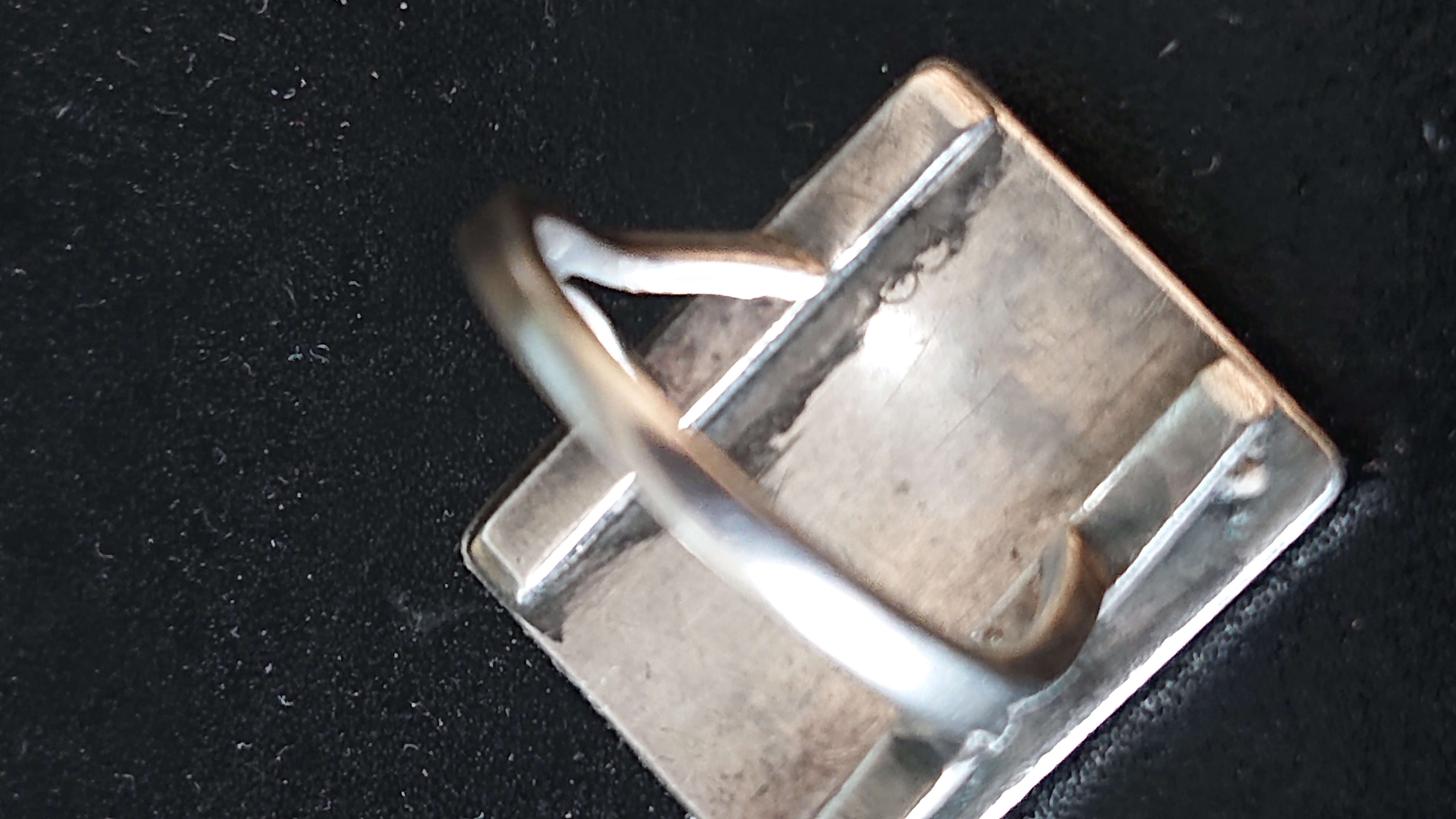 I think this might be a sam kramer ring, it does have damage to the band where the ring band has partly come off, there seems to be a marking but its goes under the ring band? There is a green stone which is carved with a floral design which I have seen similar sam kramer rings with owl and indian. Anyone know if this is Sam Kramer and how much it would be worth?