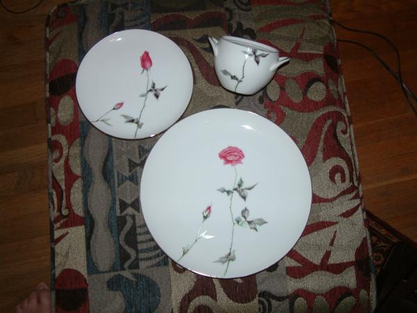 My mother bought this set of dishes with her first pay check as a gift for her mother (my grandmother). My grandmother, now 90 years old, is passing them on to me.