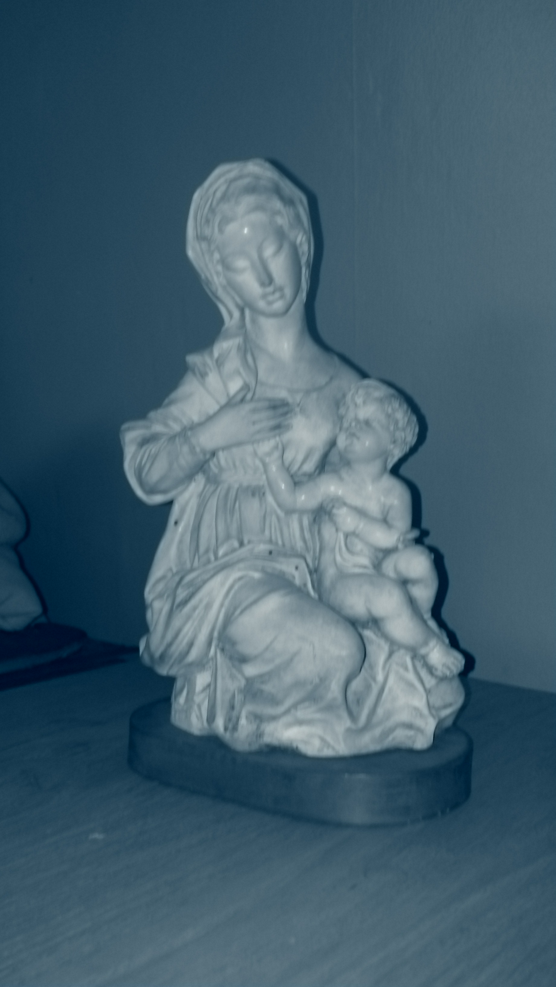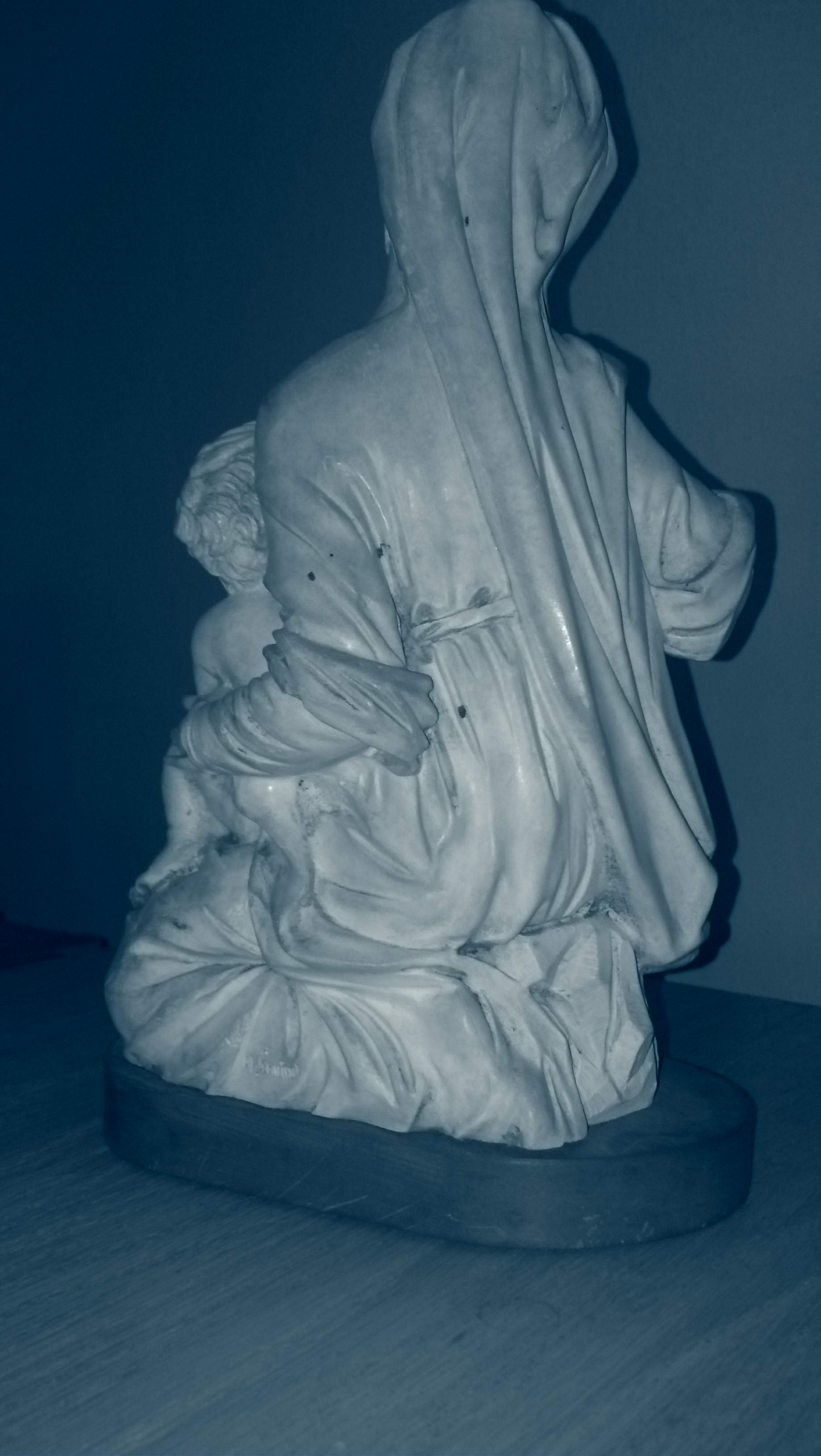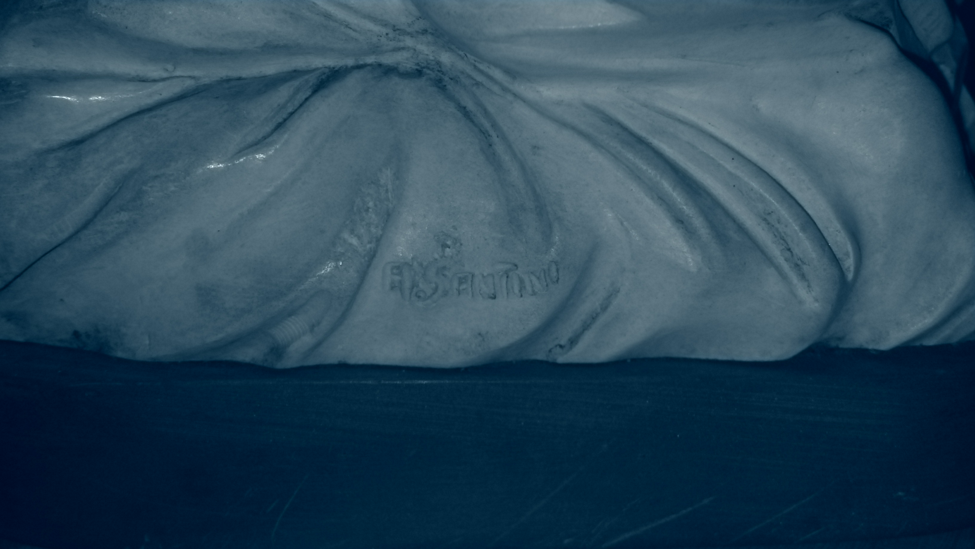 Santini was instrumental in developing a process of combining marble, alabaster and resin. This material was poured into molds made by Santini. His sons still make them today from his molds. He didnt carve ivory.
