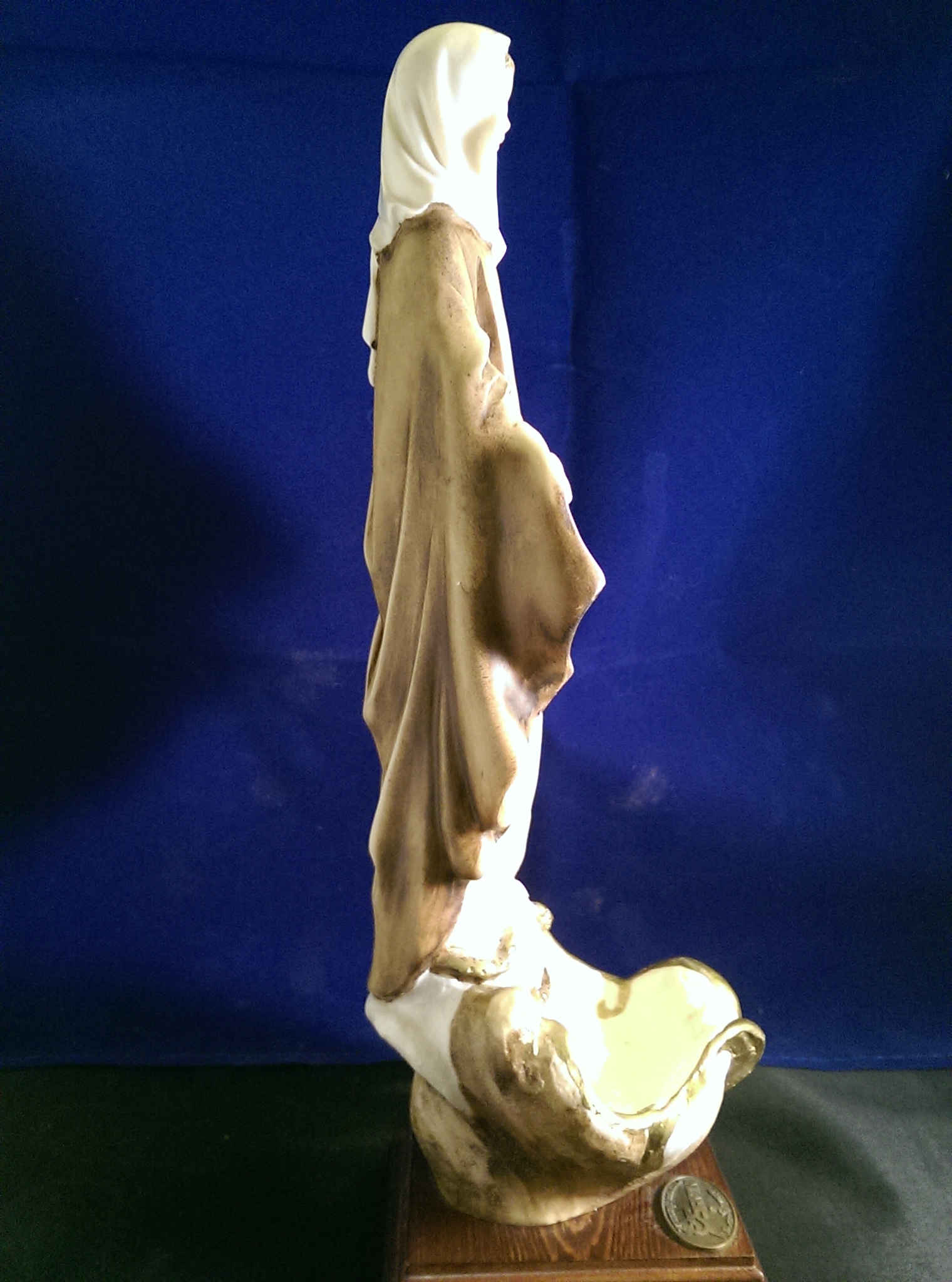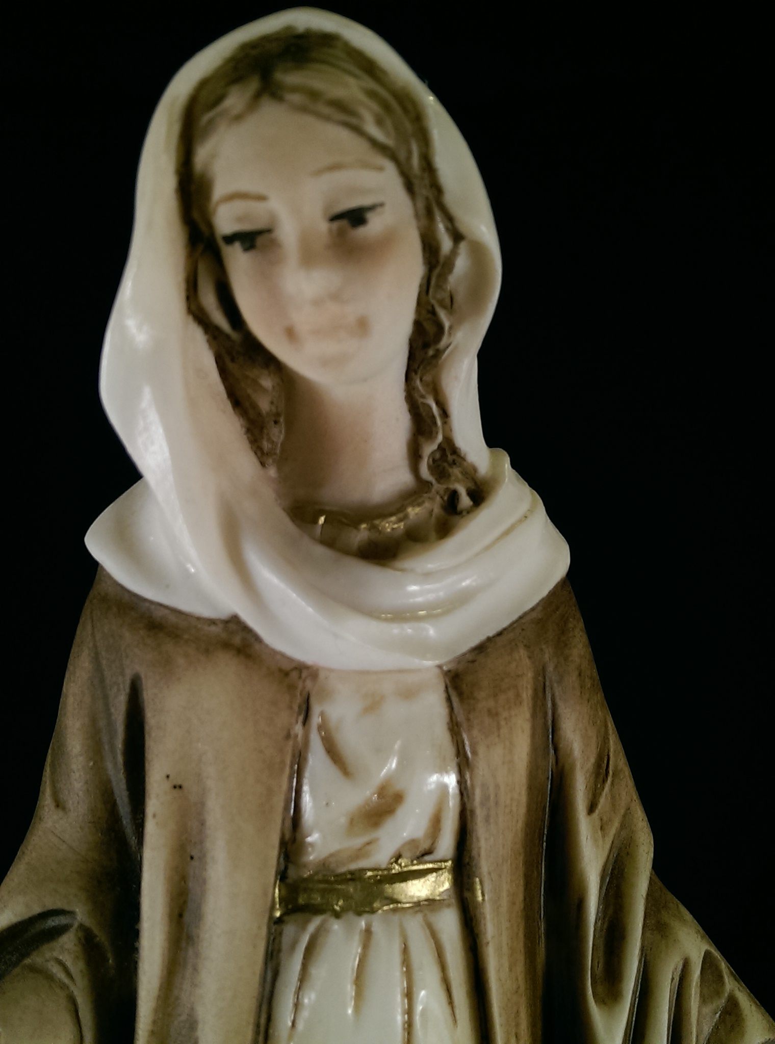 Of all the Lady of Grace statues I have seen, none have the rapped scarf, and only one has her standng on a snake or as a Holy Water Font.