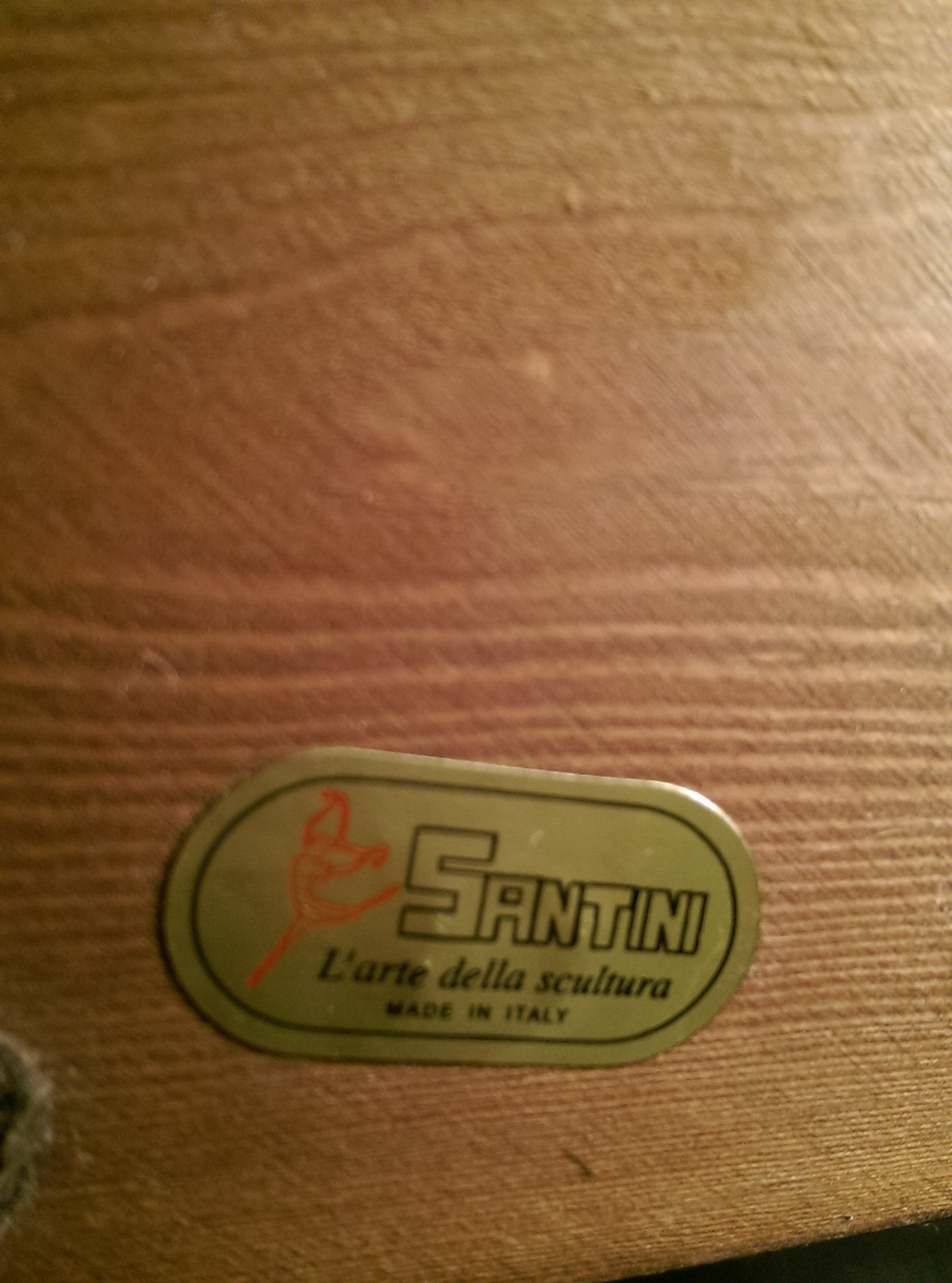 Base has label, and marker reads “L’arte Della Scultura by A. Santini” made in Italy