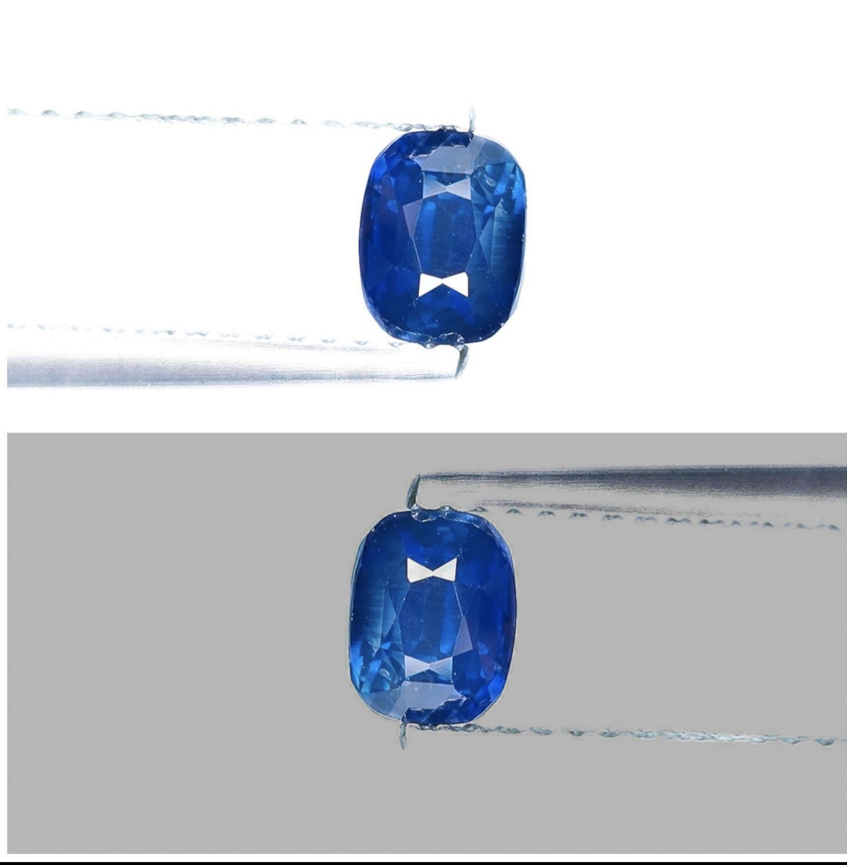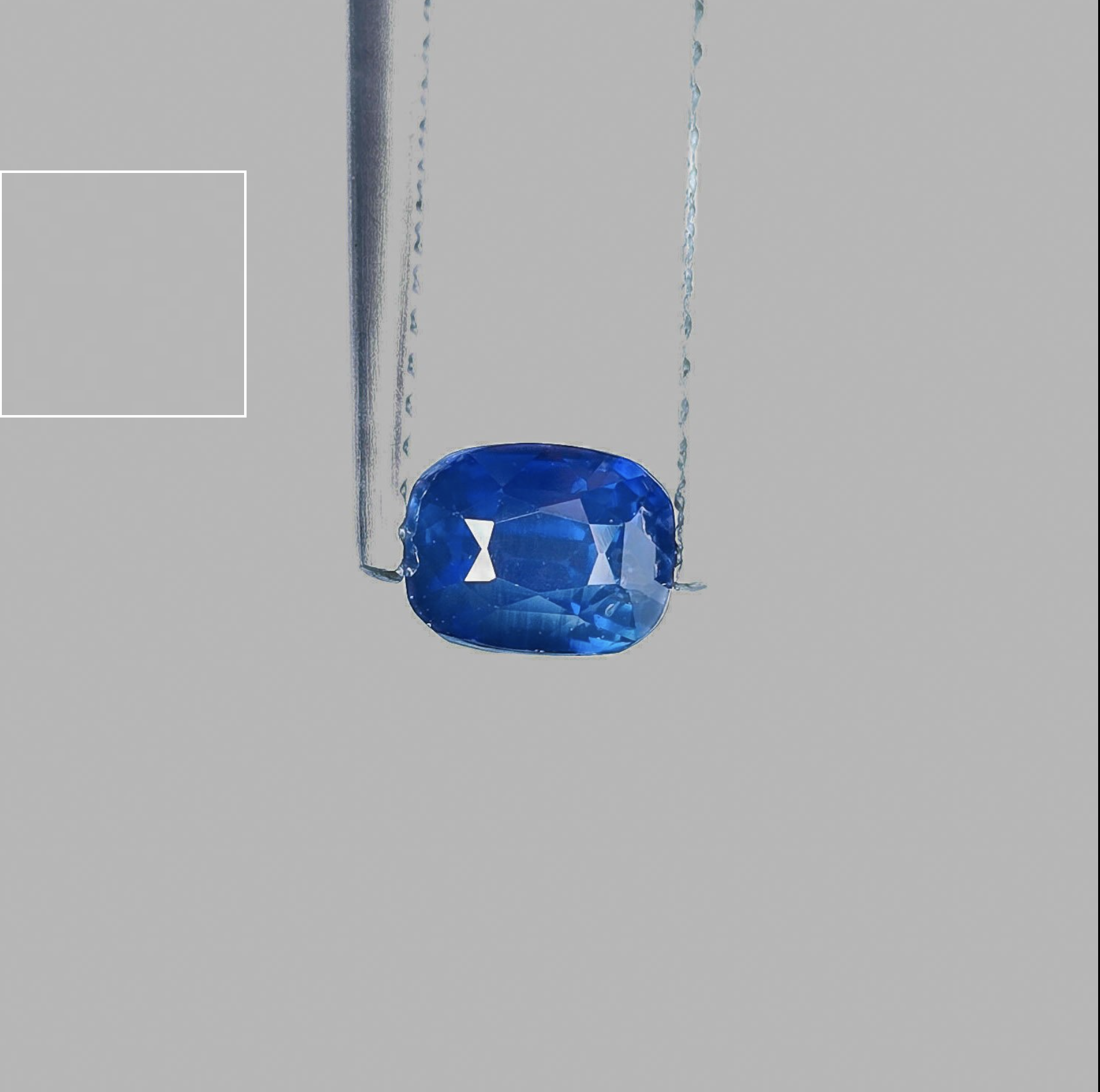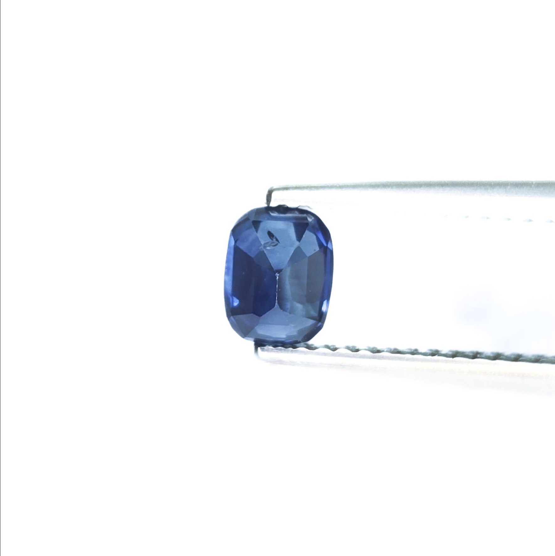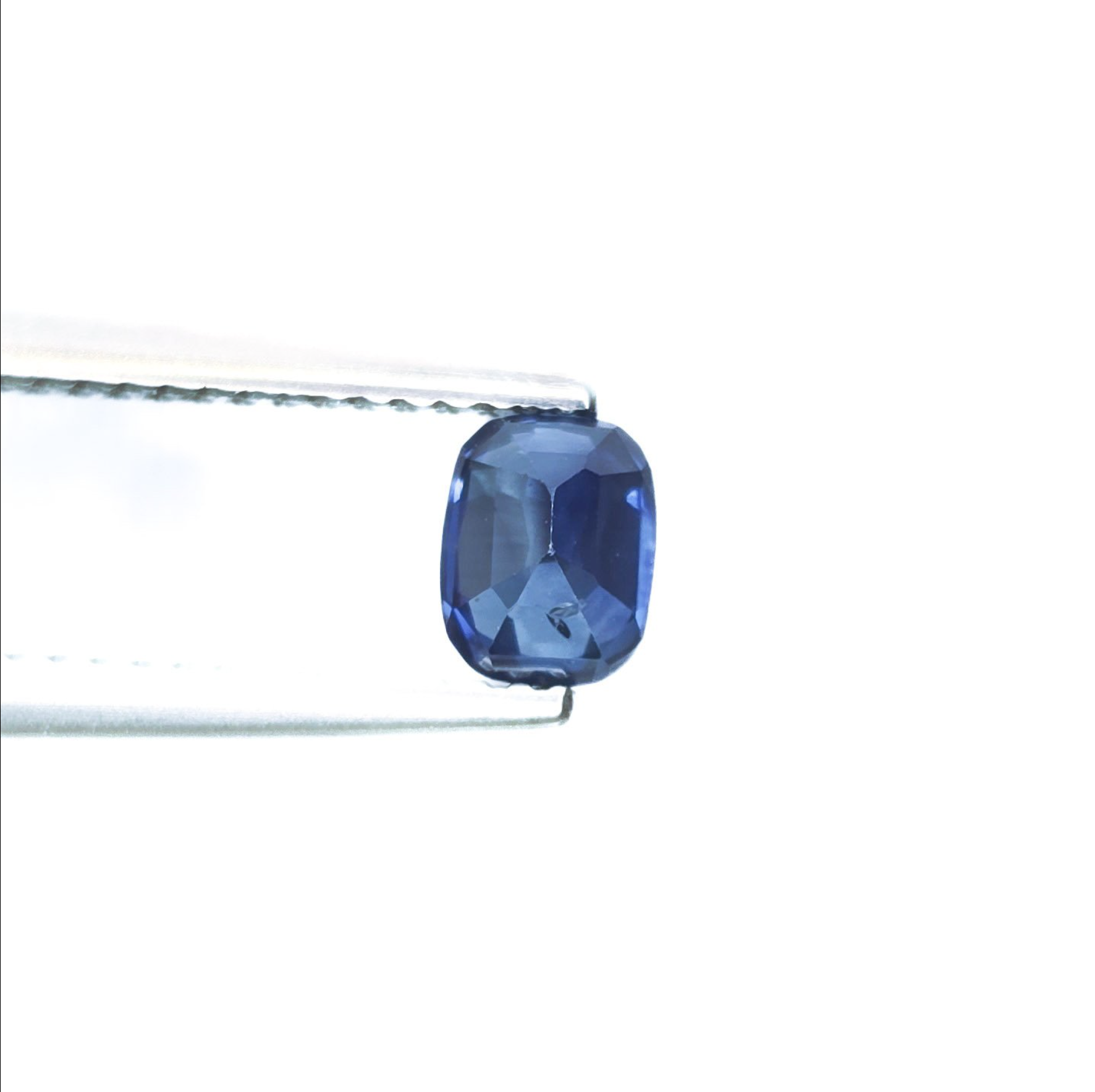 Physical Description: This is a natural sapphire, specifically a rectangular cushion cut gemstone. It measures 5.58 x 4.37 x 4.28 mm and weighs 1.02 carats. The color is a deep blue, and it is transparent with natural inclusions. The gem exhibits a mixed cut style.