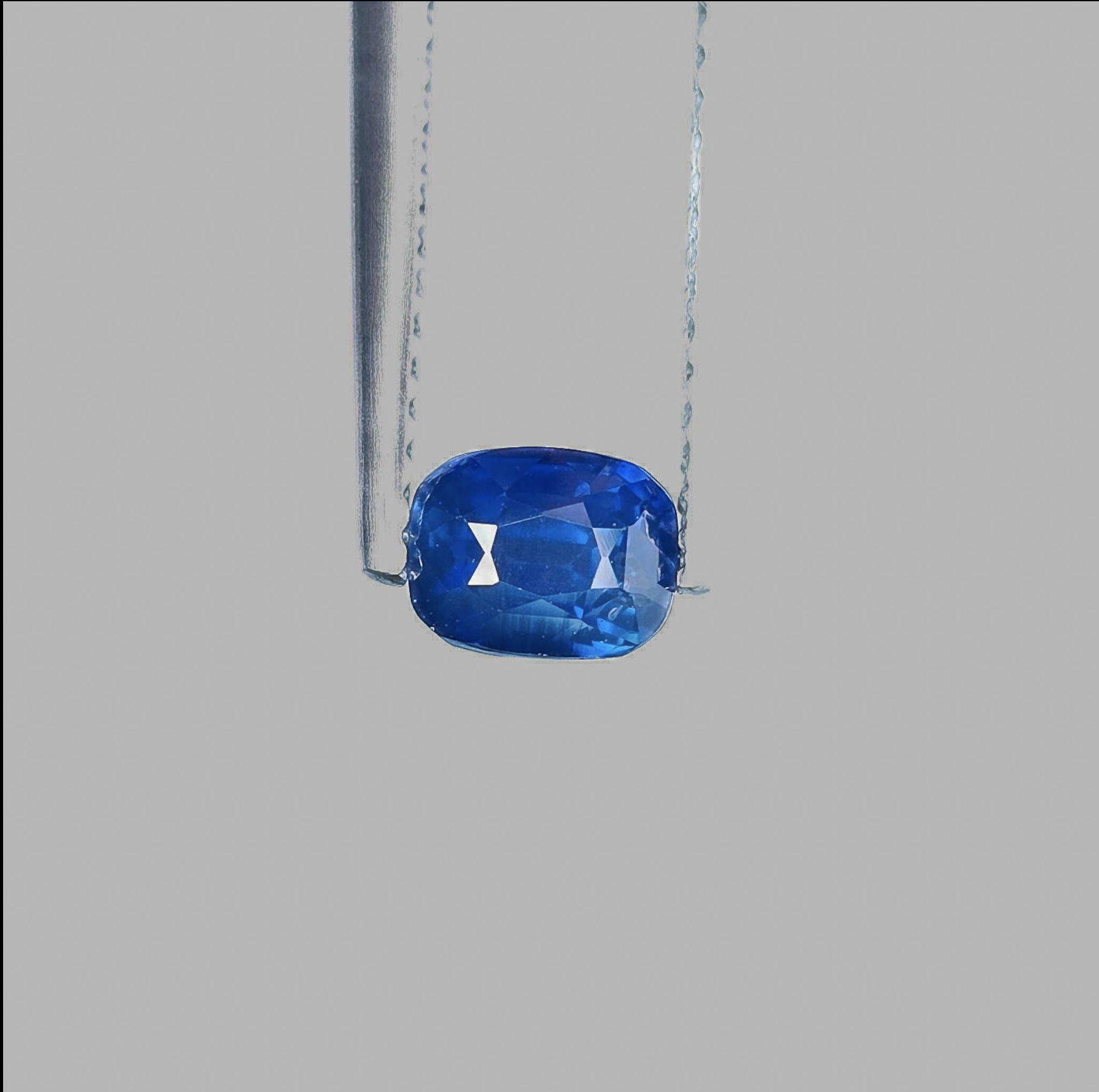 The sapphire's characteristics, including its cut and origin, suggest it is a contemporary gemstone, likely from the late 20th to early 21st century. The rectangular cushion cut is a popular style in modern jewelry.