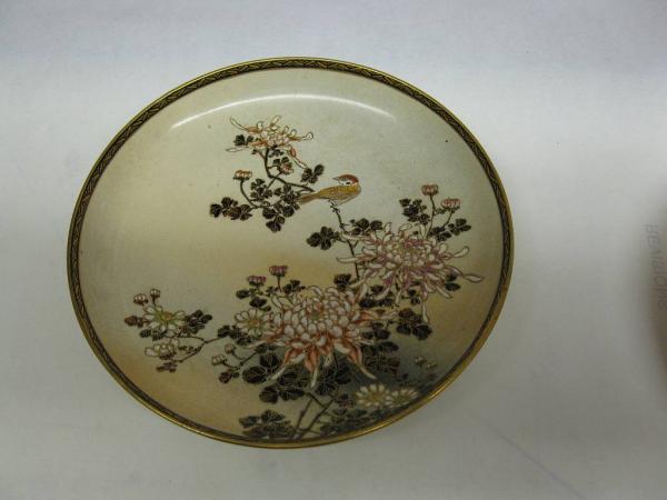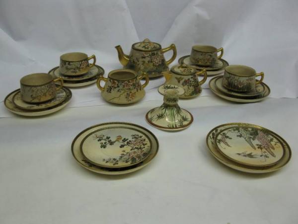I am trying to find out more about this tea set. No people are in any of the designs, just a variety of birds. Pictures show the mark and the set and detail of a plate. Lots of gold and it does have the finely crackled glaze of Satsuma.
