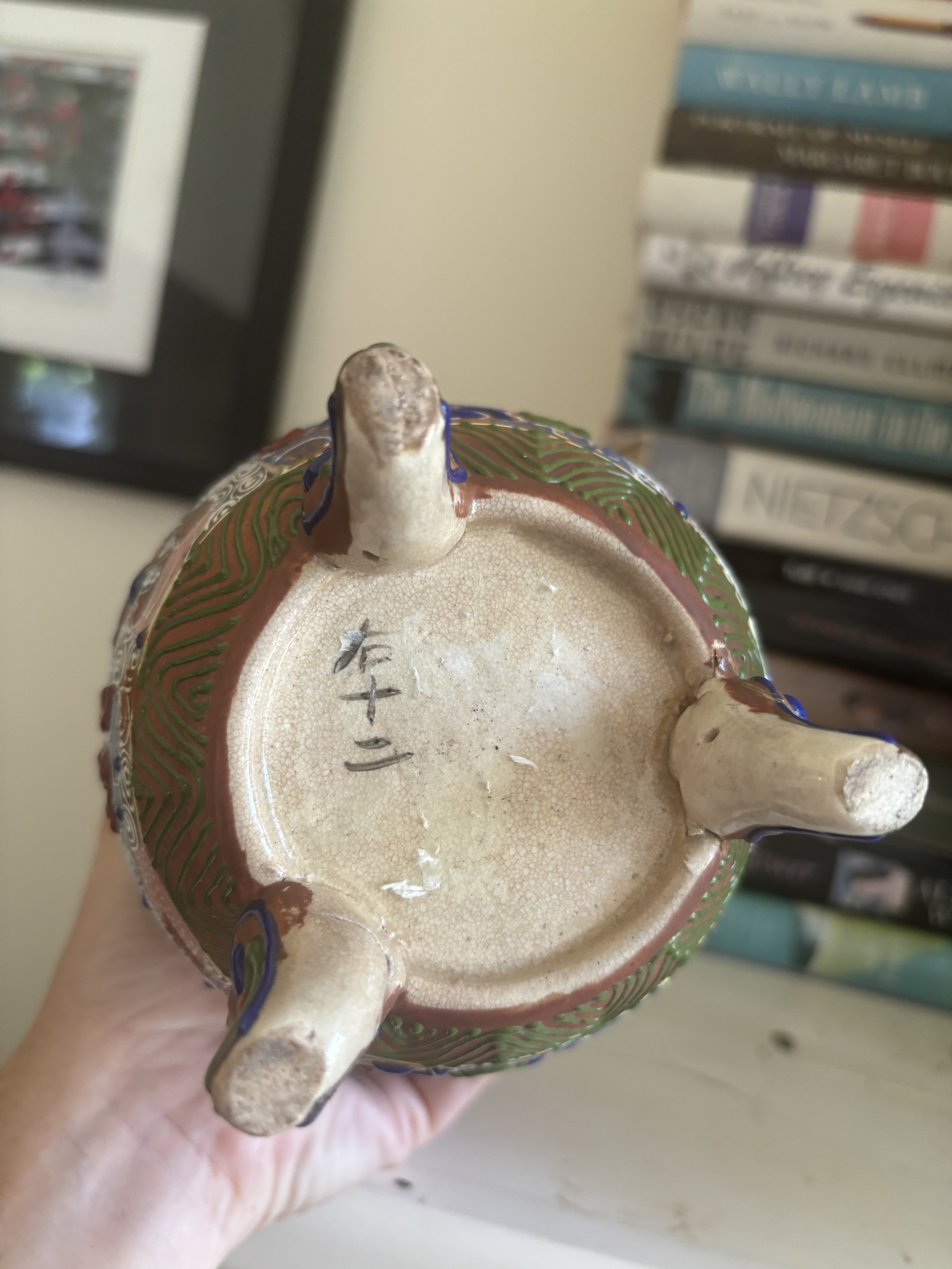 Satsuma ware originated in Japan during the late 16th century and became particularly popular in the late 19th and early 20th centuries. It is characterized by its intricate designs and rich colors, often depicting scenes from Japanese folklore or history. The vase in question is likely from the Meiji period (1868-1912), a time when Japan was opening up to the Western world and its art was highly sought after.