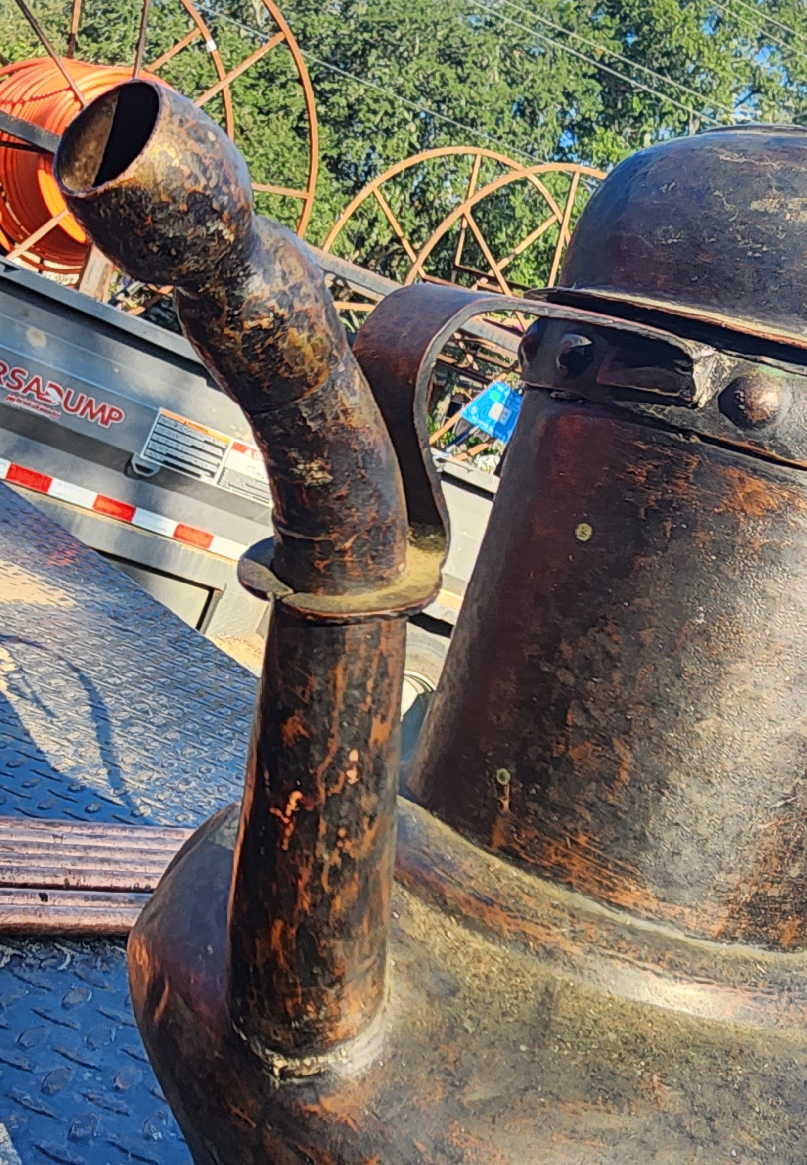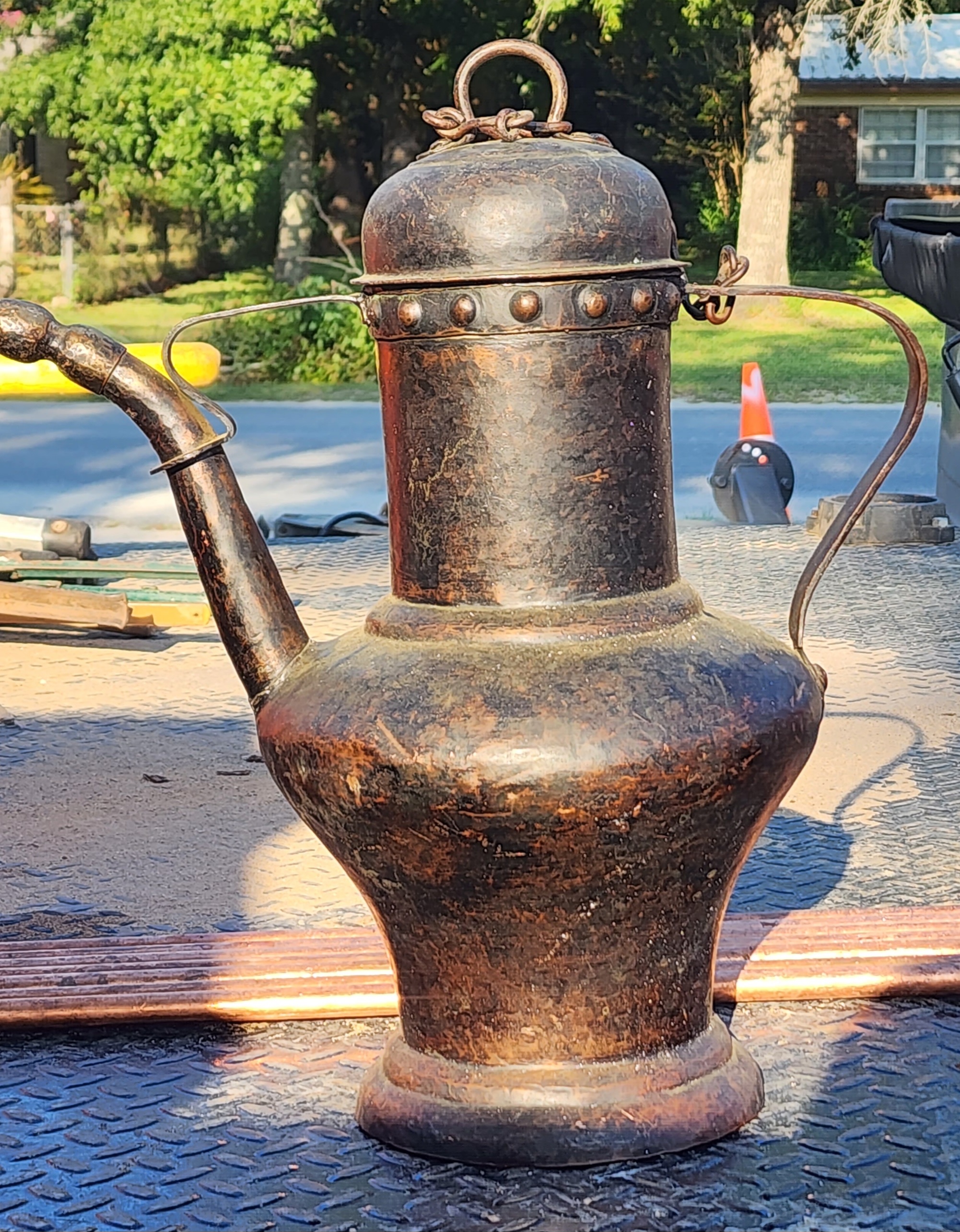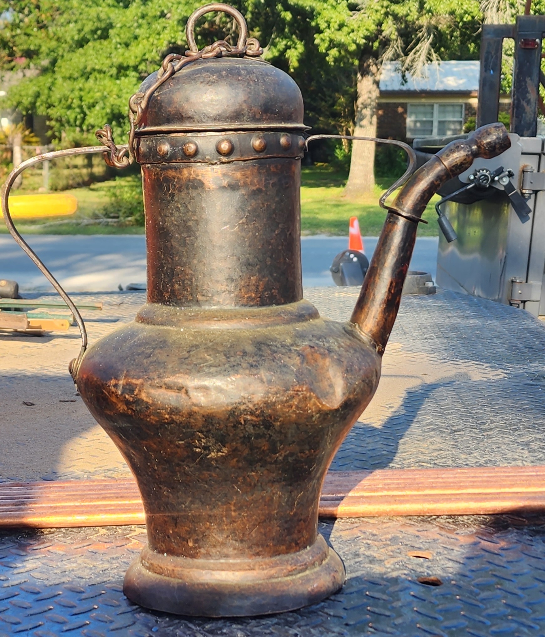 I know nothing about it other than someone said they believe it's French and from the early 1800's. It stands about 15-18" tall and weighs around 3 pounds. Made of copper and it is definitely handmade. There are no markings on it that Ive been able to find. Found in the Florida panhandle when it fell off a trailer loaded with scrap metal. I'm trying to get any details I can on it before I decide whether to keep it or sell it. Thanks