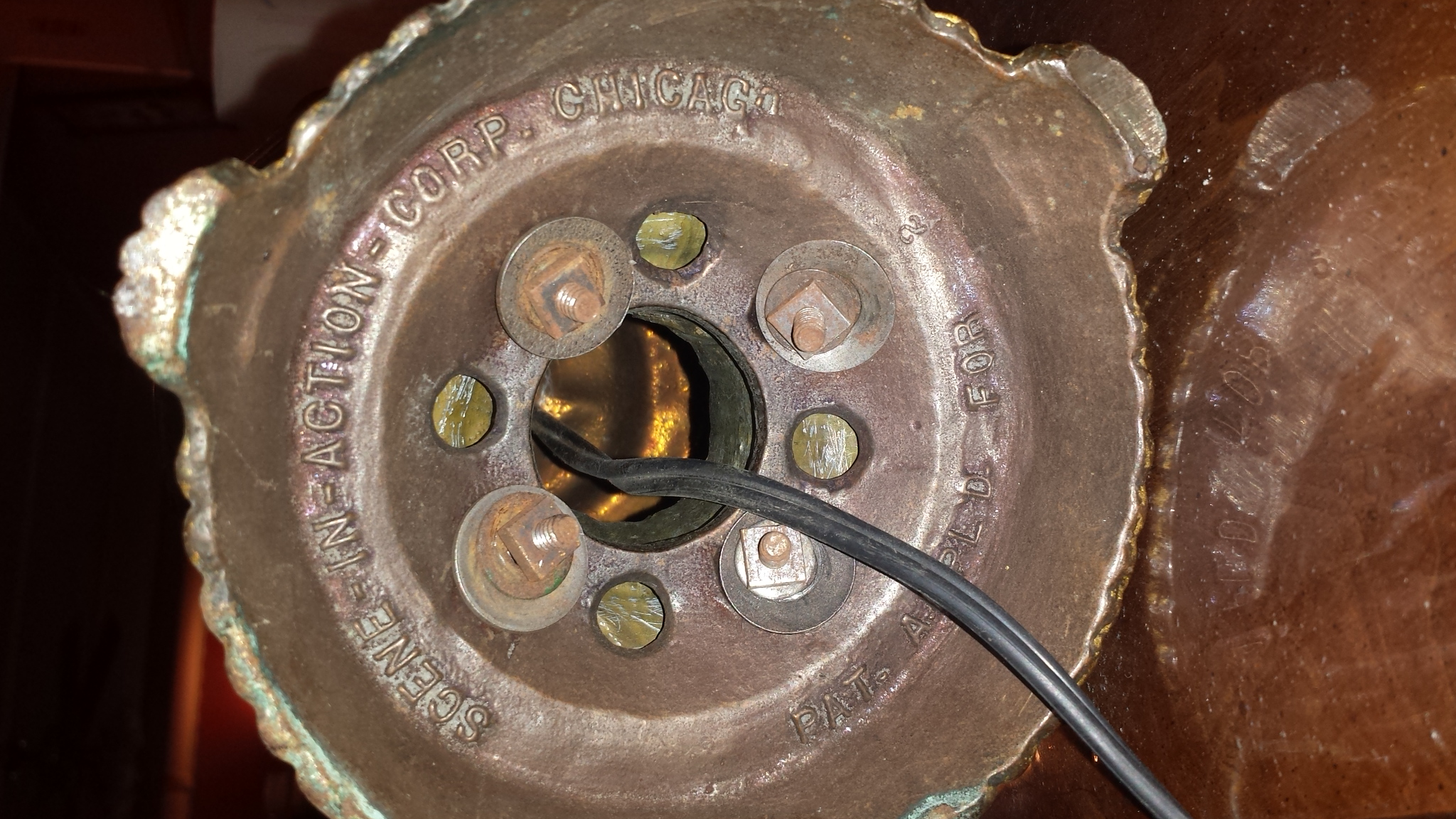 I cannot find any from of information on this lamp. It is made by the Scene-In-Action company. It stands about 18" tall. It is made of all metal which looks to be painted. None of the other lamps from this company have looked anything like this one. If anyone knows the age/history/value of this piece I would love to know. Thank you