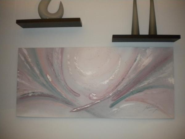 This is 40 inch tall and 90 inches wide acrylic on canvas. It has beautifules coloring and texture. What else do you know about this painting?