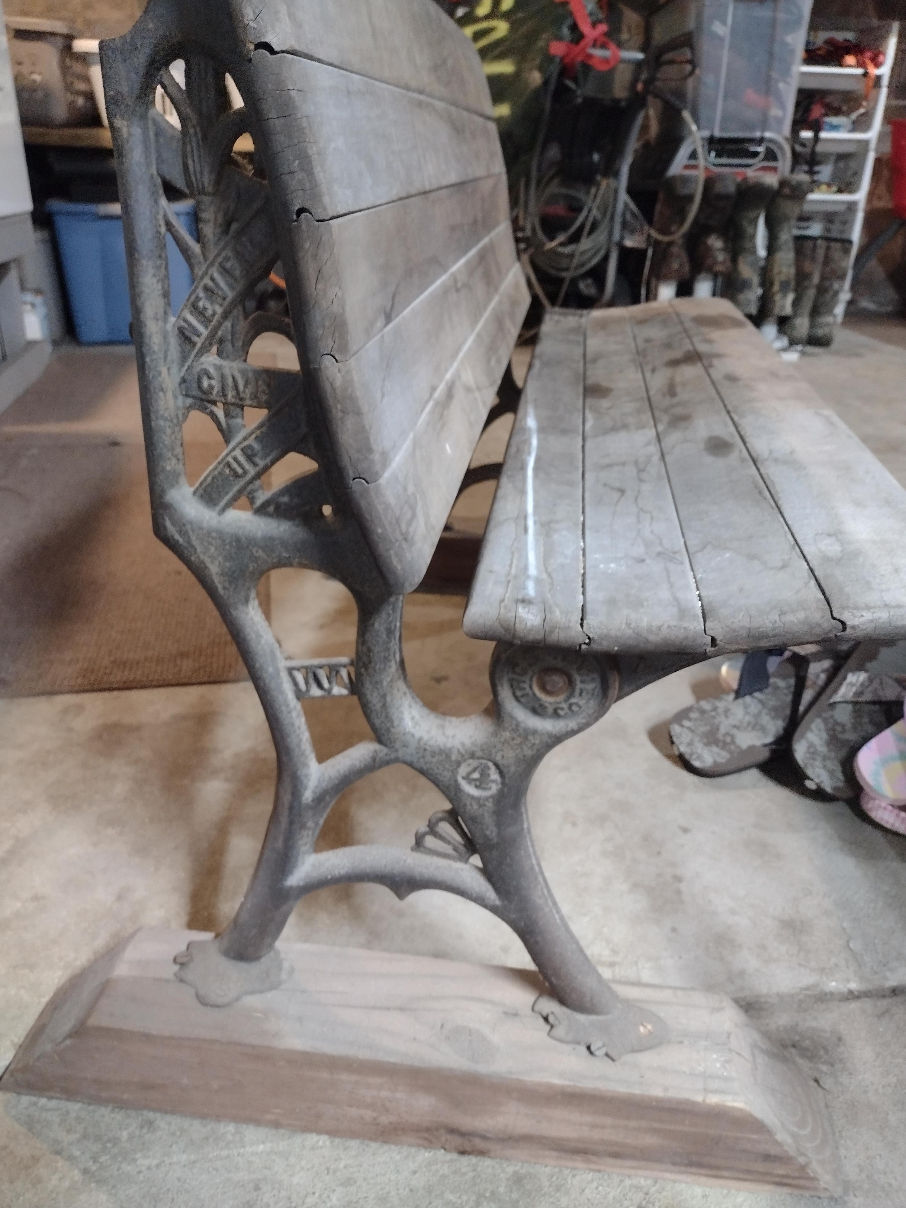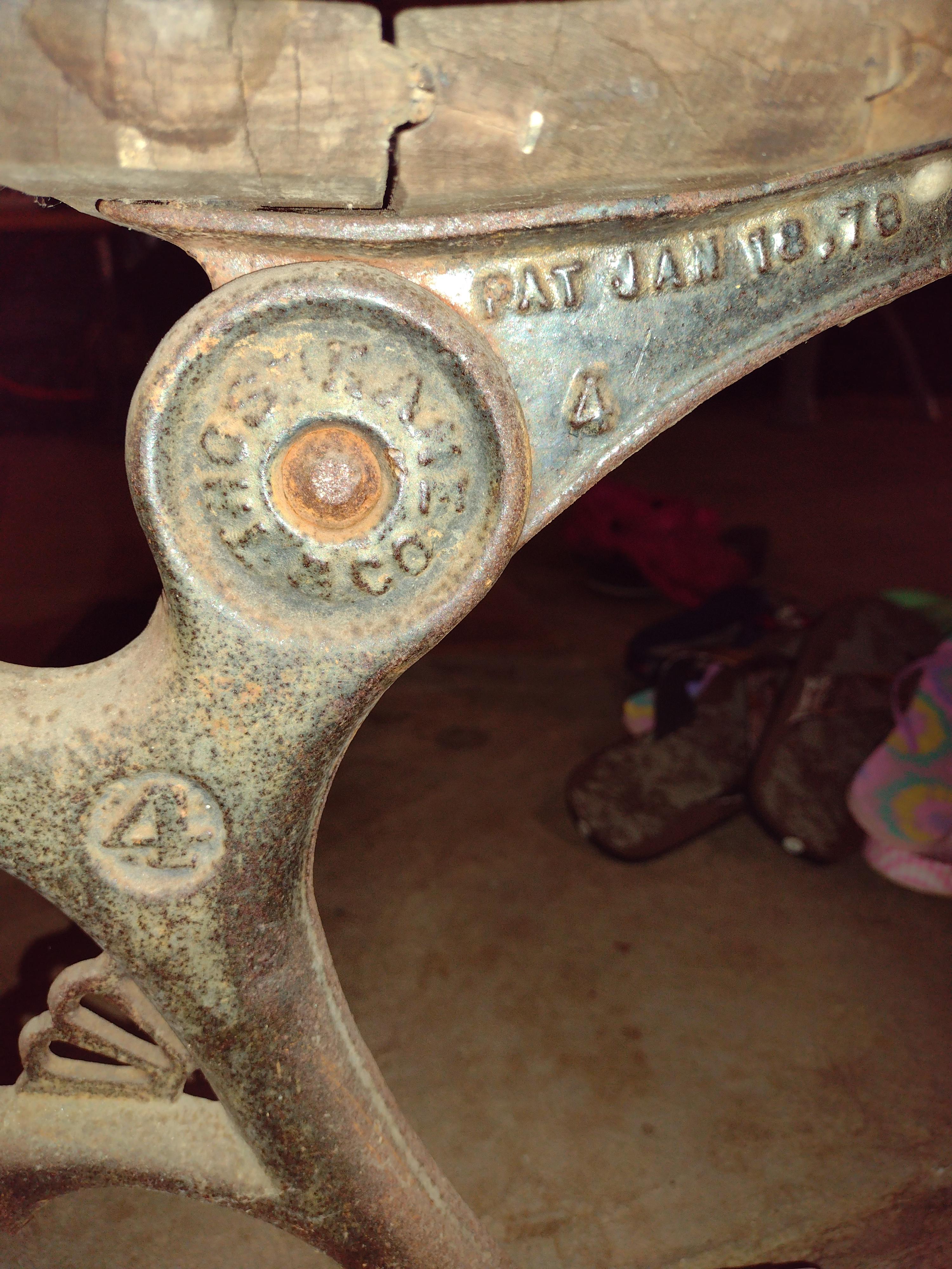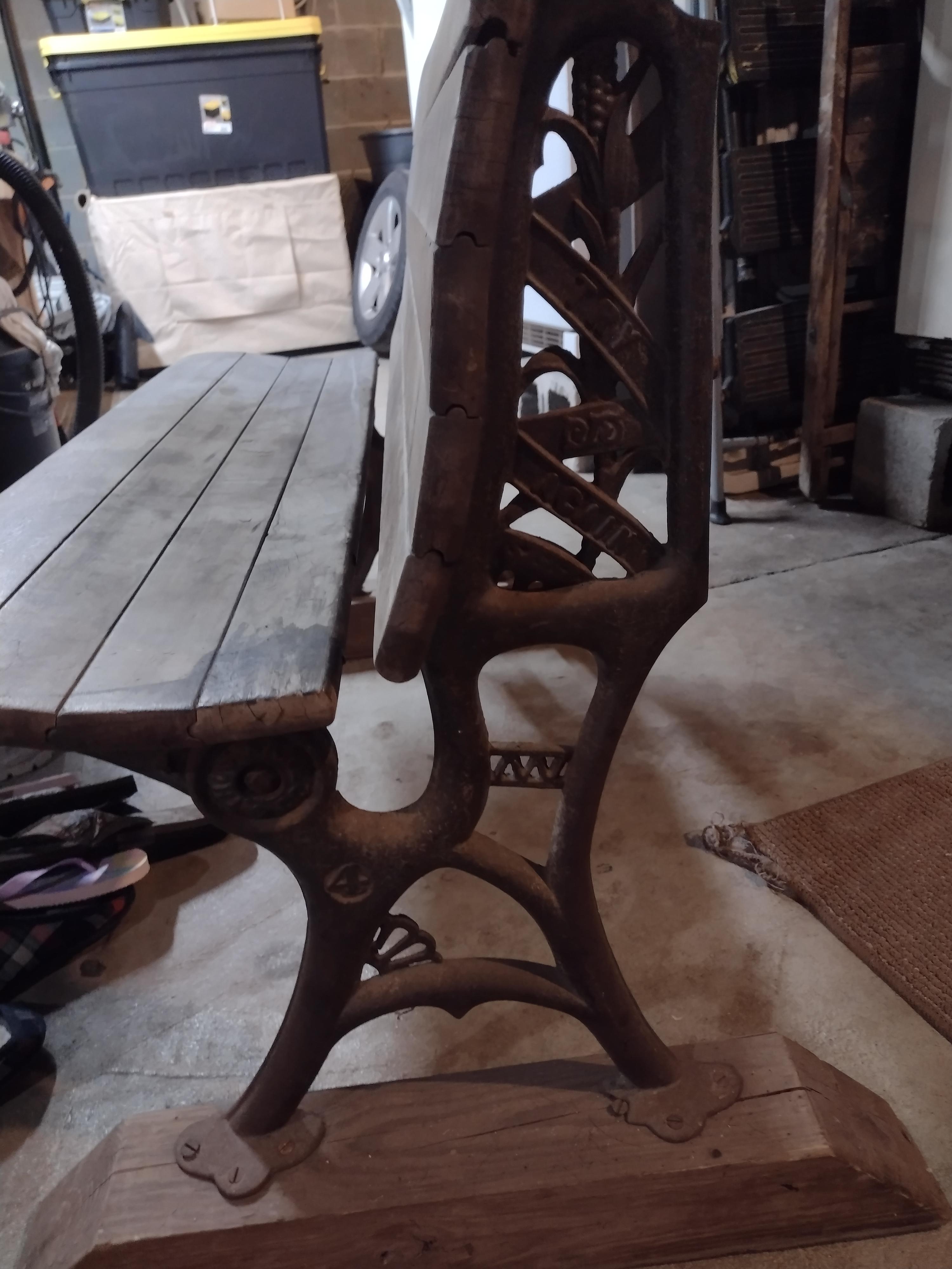 I received a schoolhouse desk bench with no information. The bench does fold. Is original wood and never has been painted. On one side it reads "try again" the other side reads "never give up". It has a number "4" on both sides and a pat Jan 18,78. Thos Kane & Co The bench is very heavy.