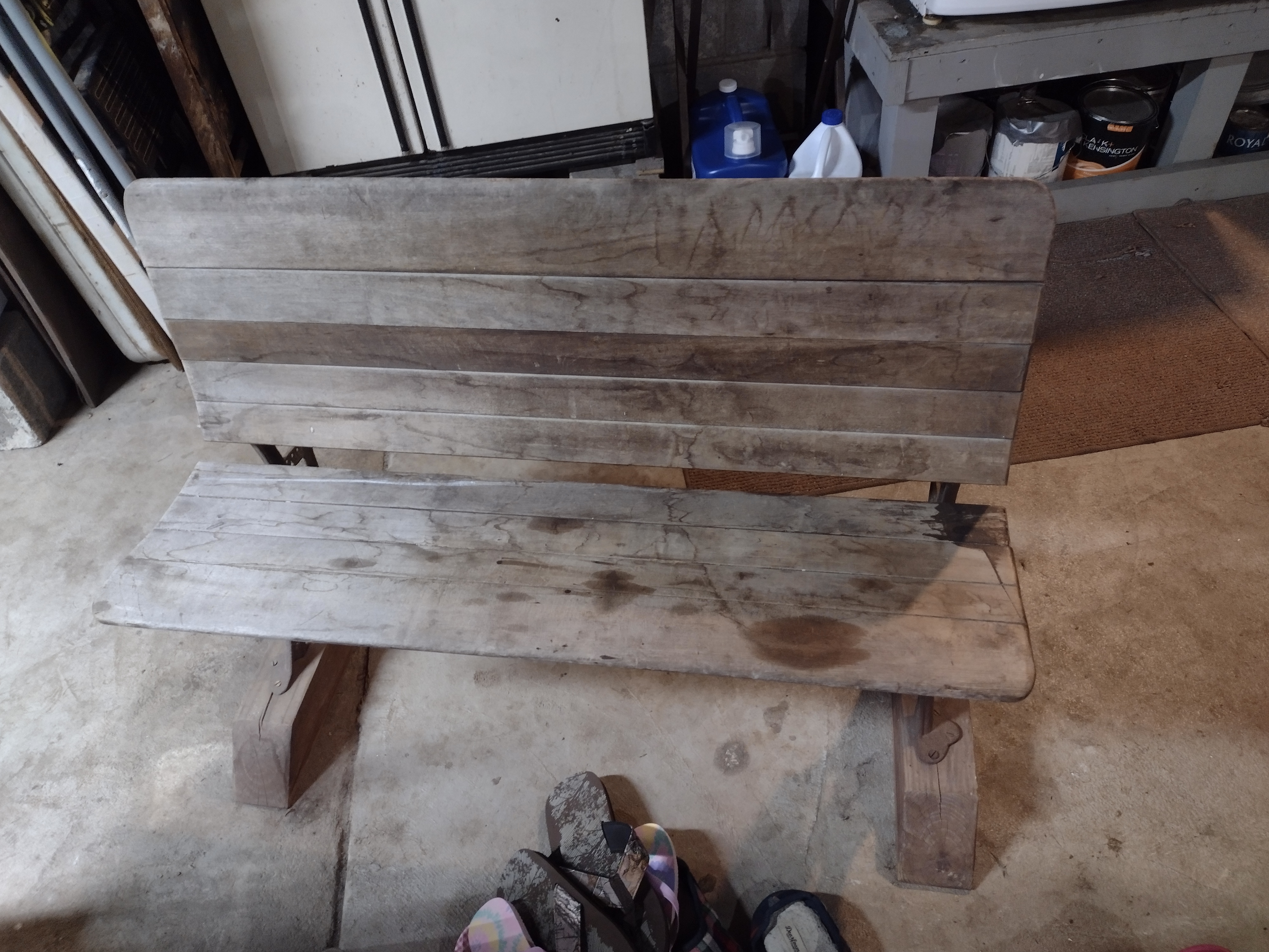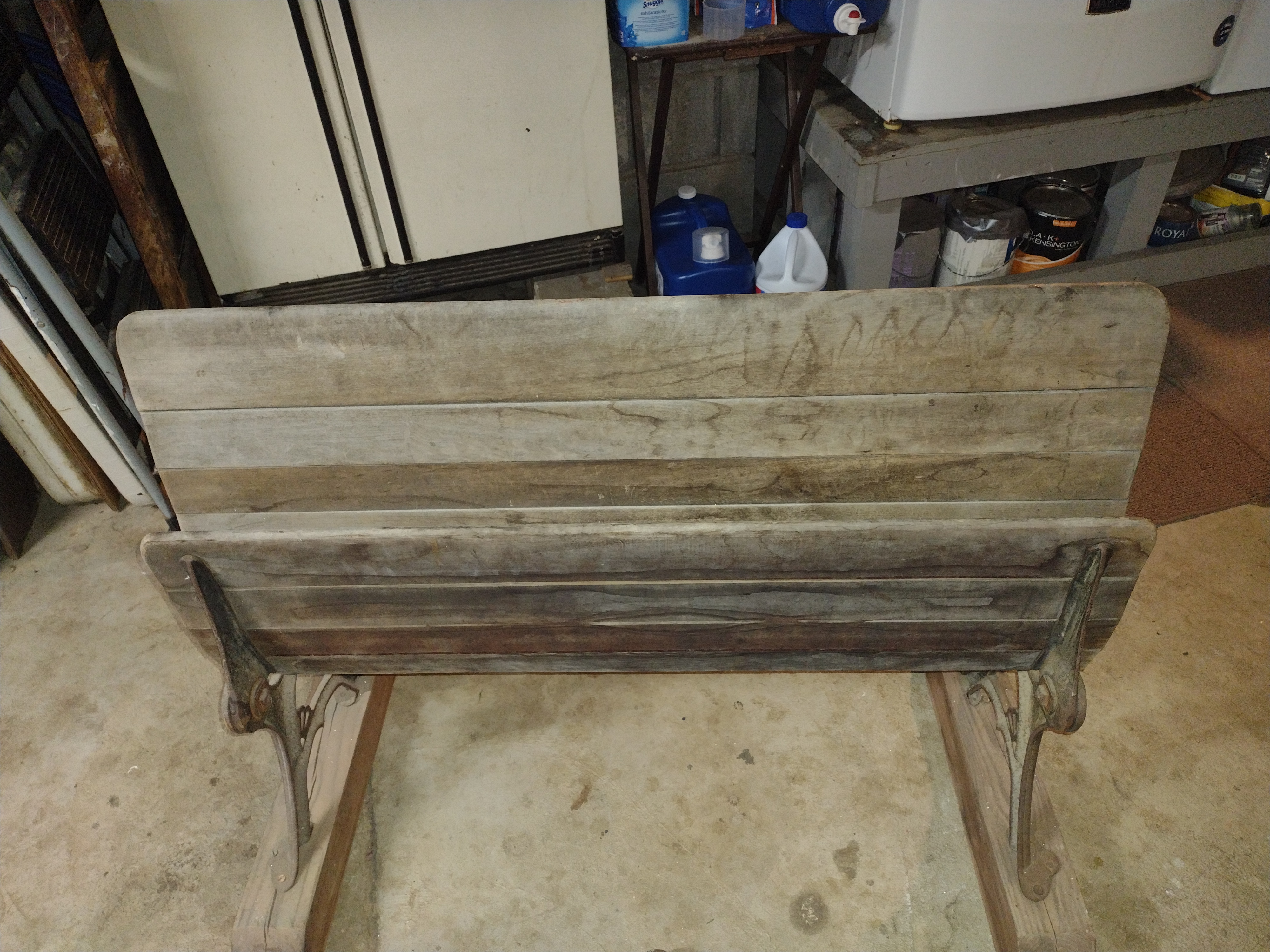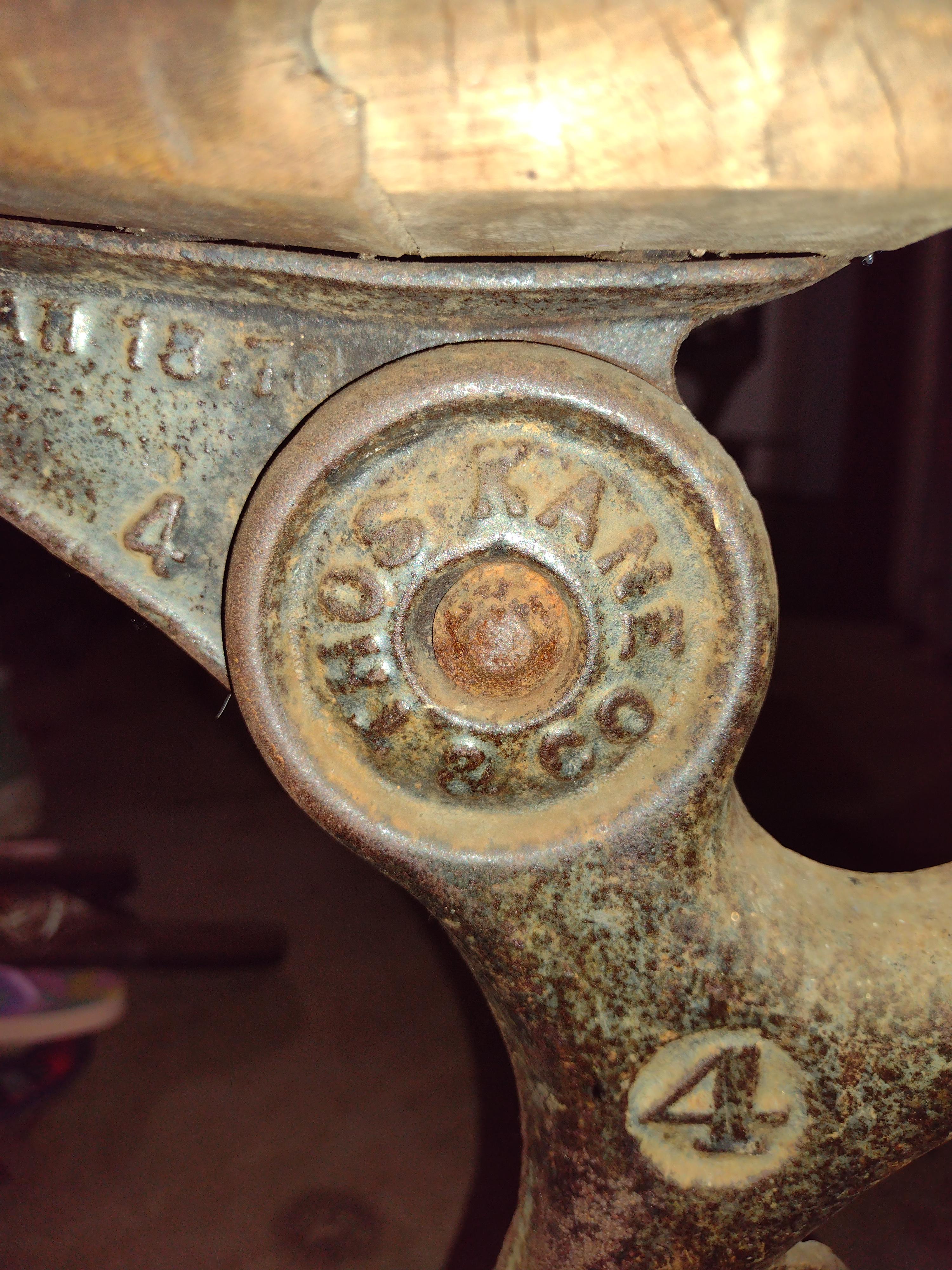 I received a schoolhouse desk bench with no information. The bench does fold. Is original wood and never has been painted. On one side it reads "try again" the other side reads "never give up". It has a number "4" on both sides and a pat Jan 18,78. Thos Kane & Co The bench is very heavy.