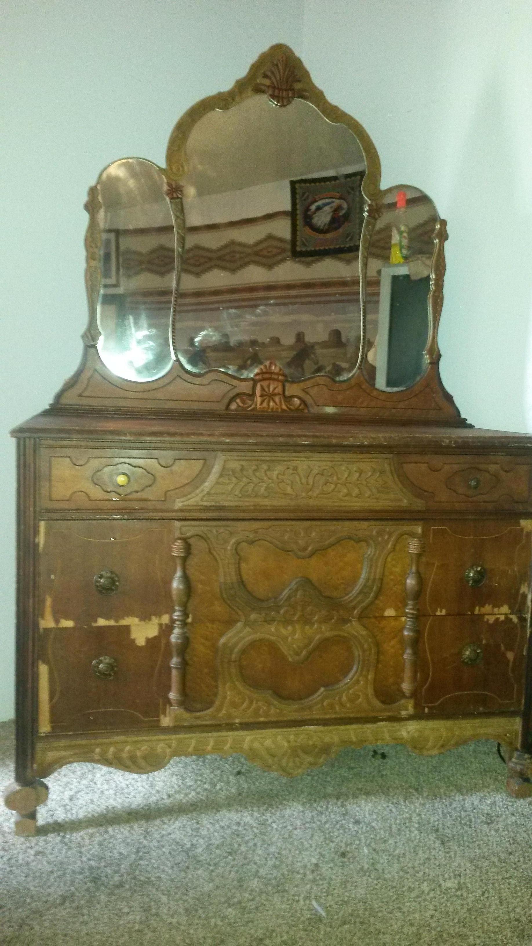scrolled dresser with mirror